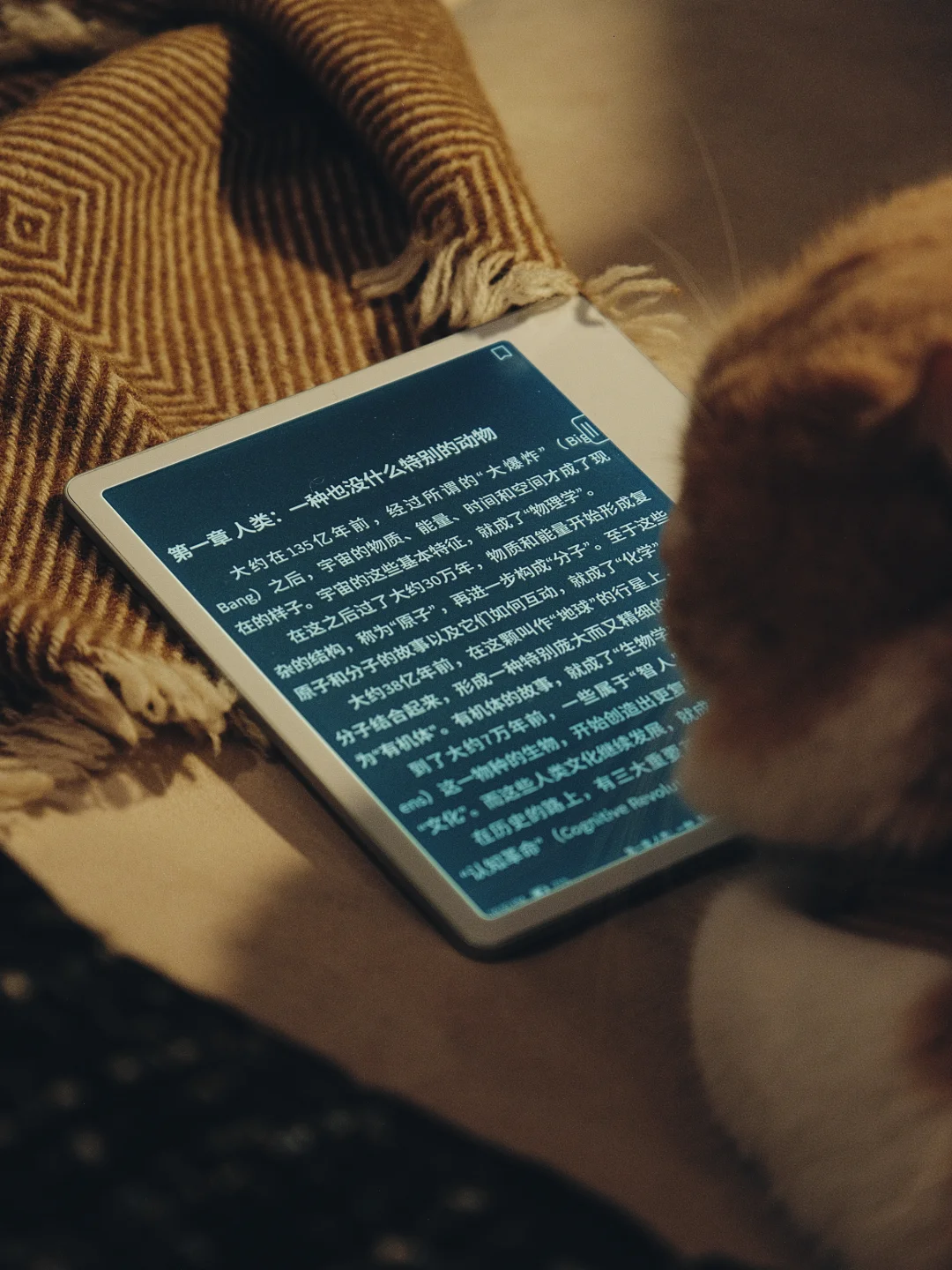 把家里一柜子沉甸甸的书都装进薄薄的阅读器里的感觉很爽,不管站着、躺着、坐着,随便什么姿势抓起来就能读。让阅读这件事变得更加轻松自在~