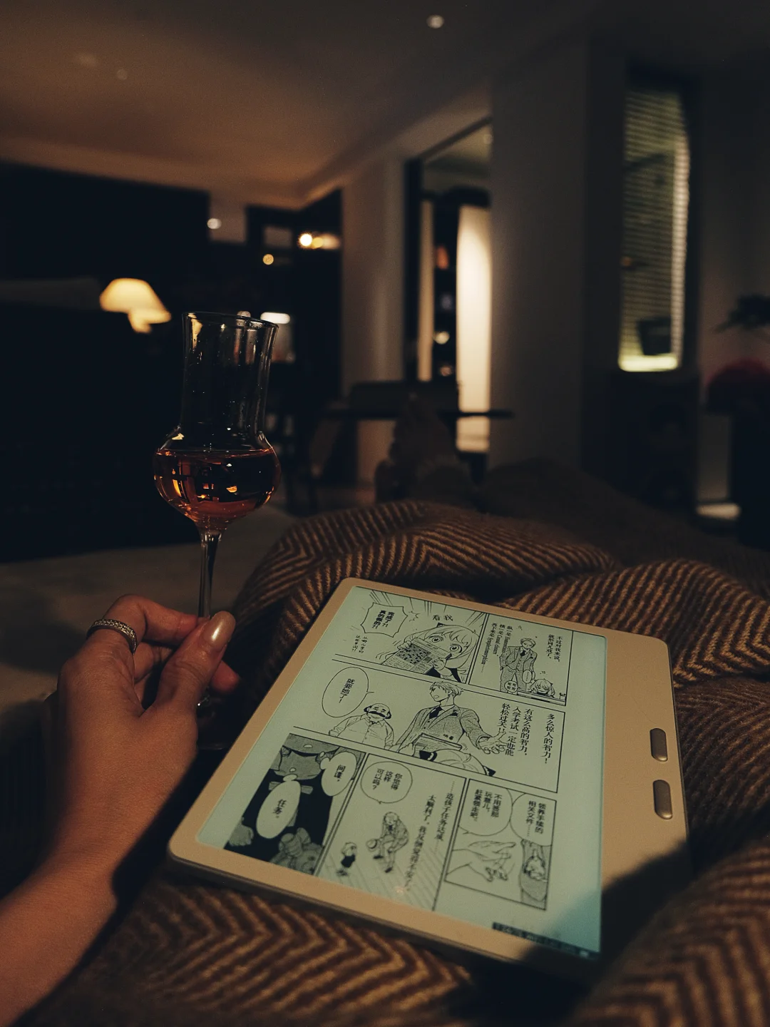 [蓝色心形R]清晰又护眼,Carta1300墨水屏带来纸张般的阅读感,而且没有蓝光频闪,小说一口气看完半本眼睛也不累。夜晚打开月光模式,黑底白字特别柔和,看书格外沉浸