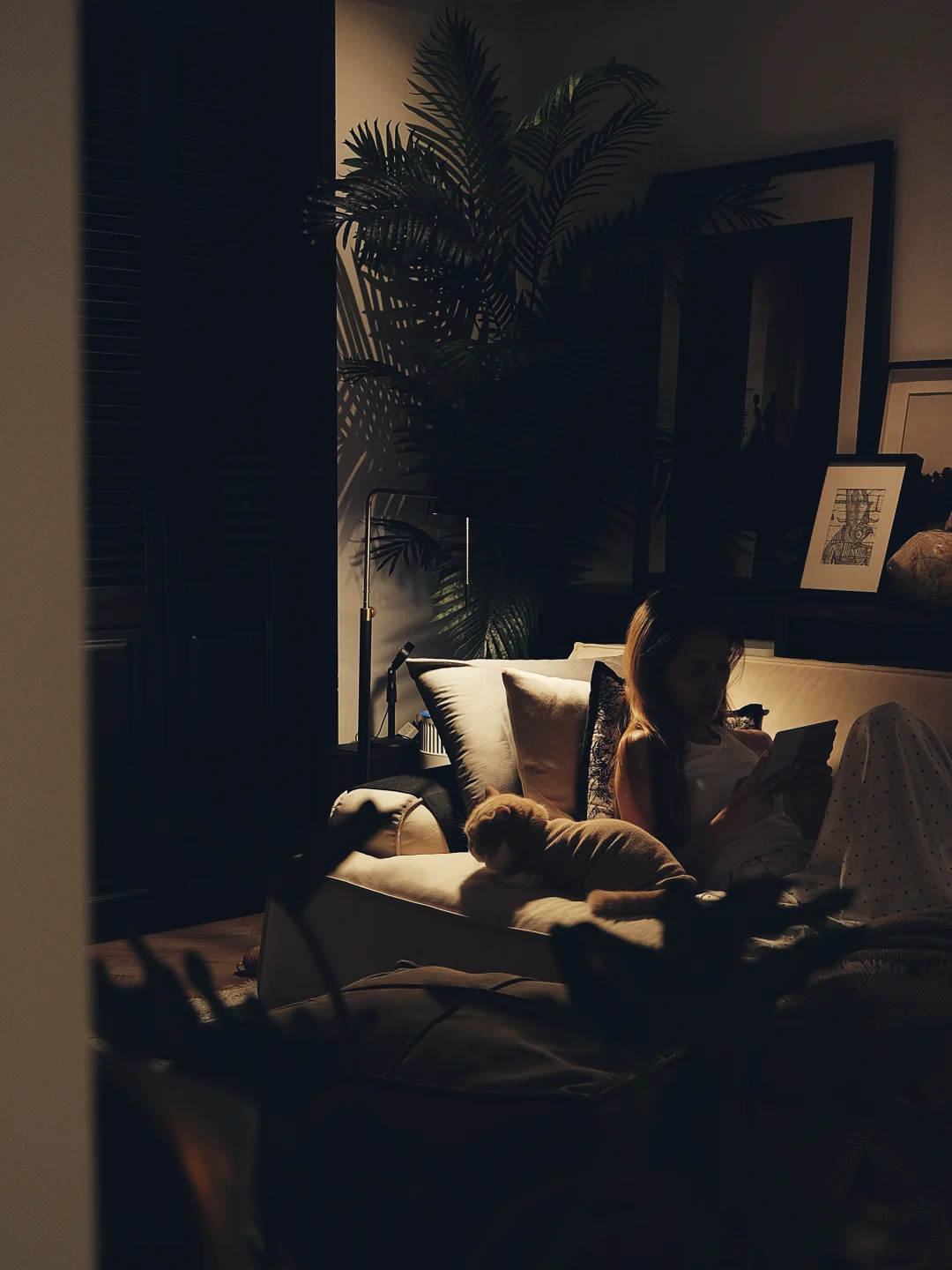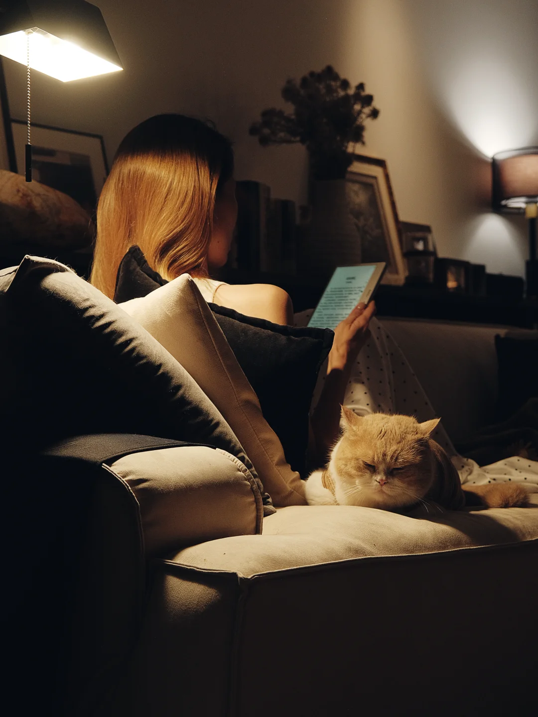 忙碌一天回来,我们都有自己的回血方式——我躺沙发上玩游戏,她躺沙发上看书📖