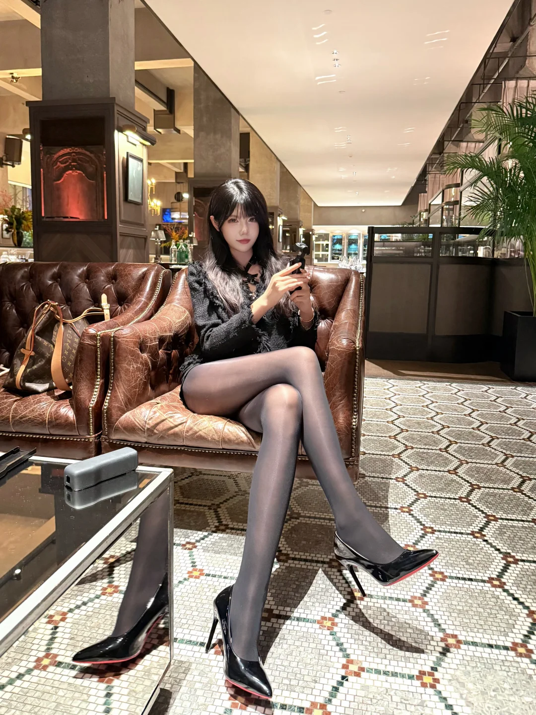 御姐大长腿日常分享白色丝袜学院风穿搭