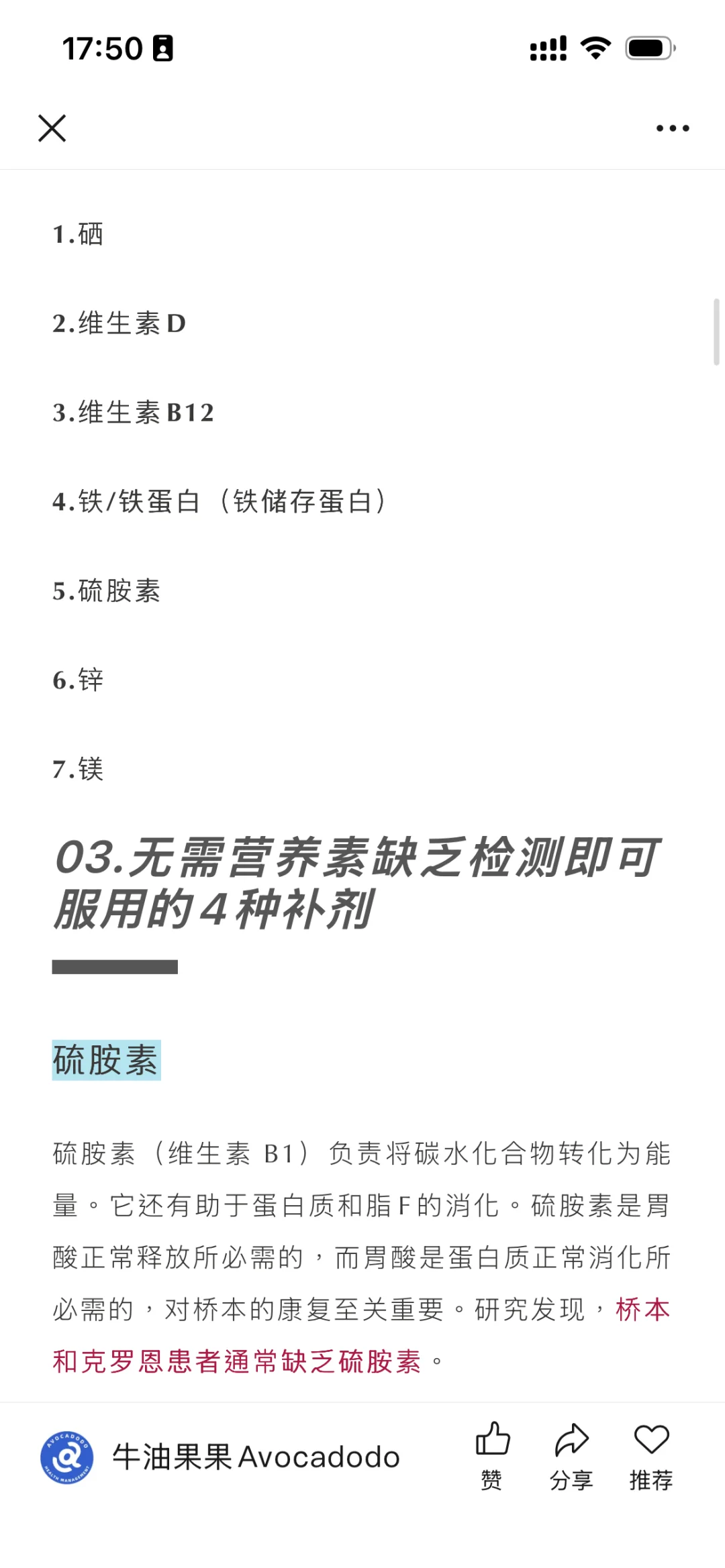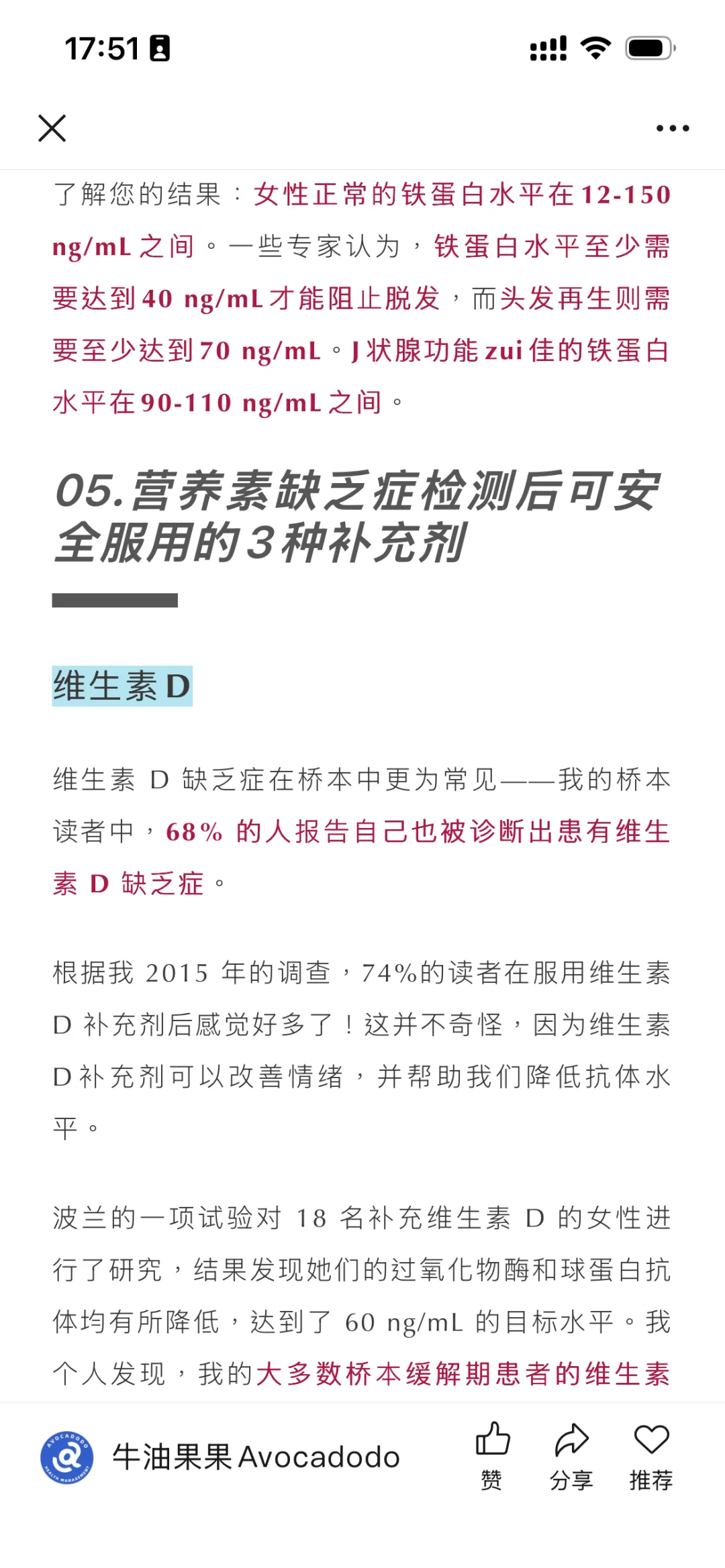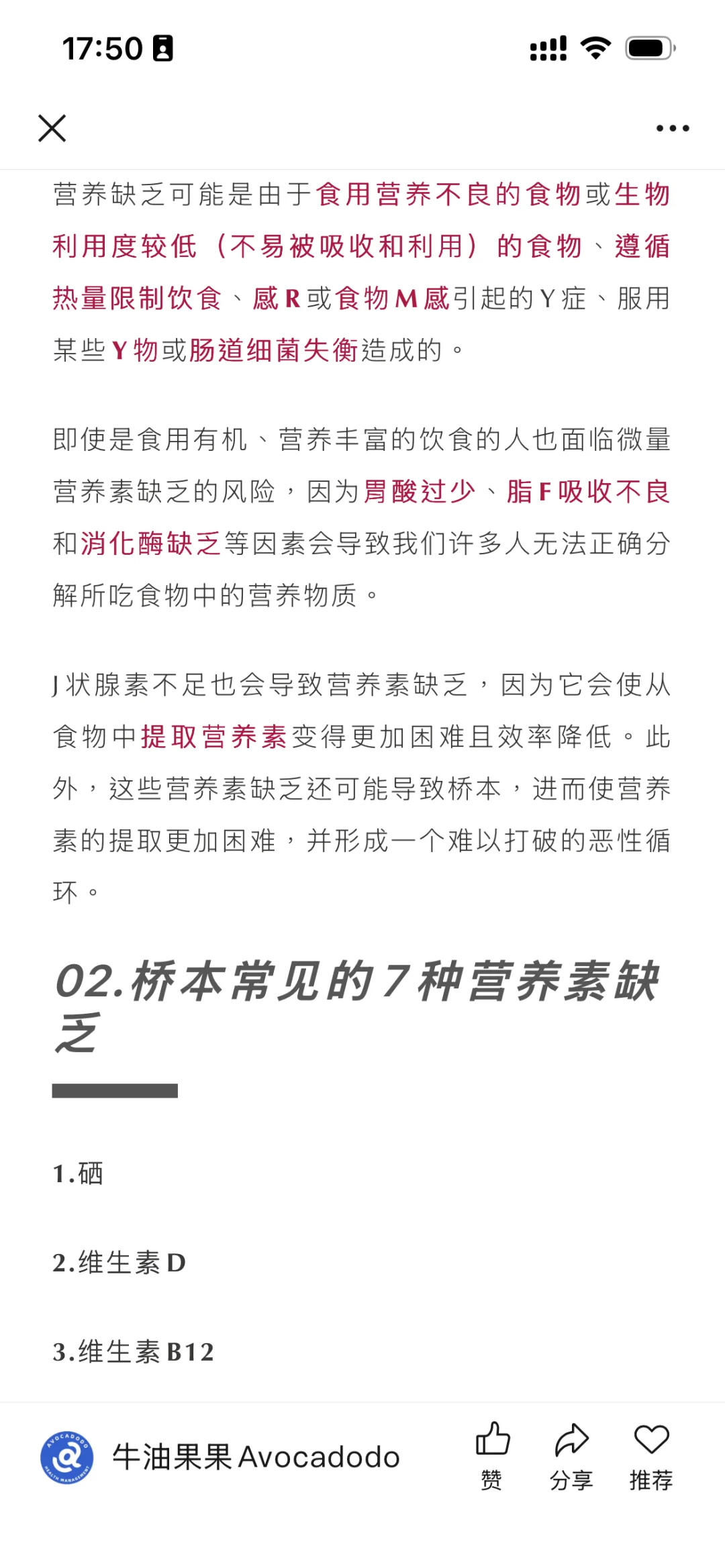 补充营养素是干预桥本的重要一环。但是每个人的身体情况不同,所缺乏的营养素也各不相同,这也是为什么果果建议大家在干预桥本前要先了解自身情况,之后再制定个性化的补剂方案。 但是桥本人对于营养素的缺乏也是有共性的。[扯脸H][扯脸H]今天,果果就来翻译一下,温兹博士对于桥本人常见缺乏的7种营养素的总结,帮助大家更好地了解自身的情况!