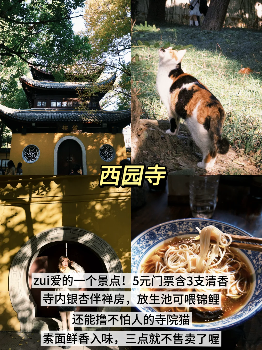 5️⃣西园寺:5元门票含3支清香,喂锦鲤、撸寺院猫,素面鲜香,8点前入园免门票