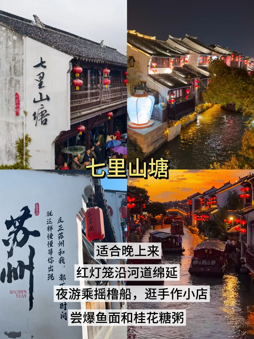 4️⃣山塘街:红灯笼沿河道绵延,夜游氛围感拉满,可乘摇橹船,清晨人少更静谧