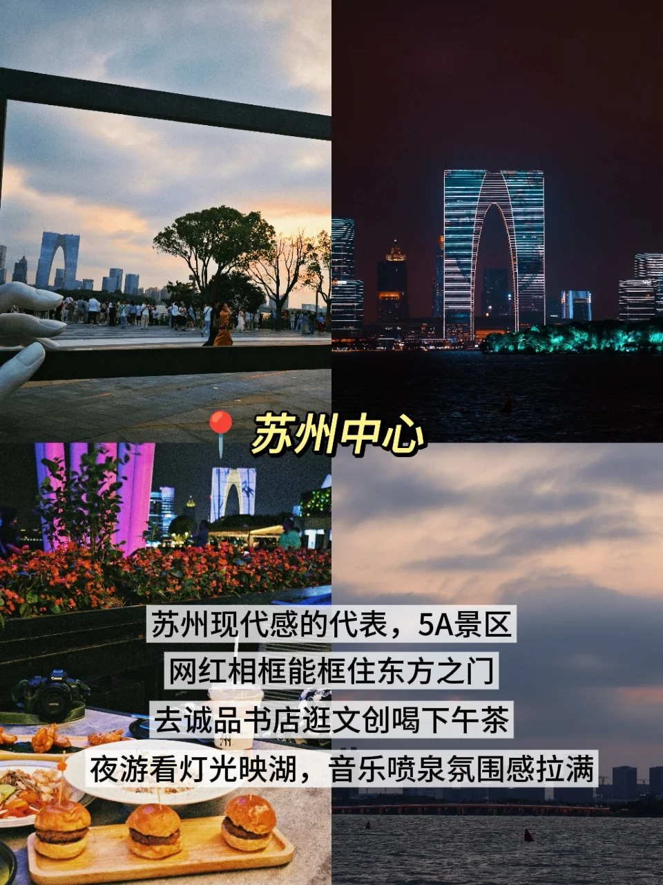 8️⃣金鸡湖:苏州现代感代表,环湖步道散步骑行,网红相框框东方之门,夜景超震撼