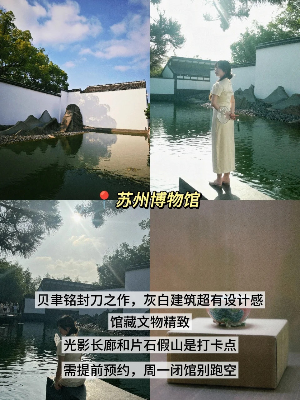 1️⃣苏州博物馆:贝聿铭封刀之作,光影长廊+片石假山超好拍,提前3天预约,周一闭馆