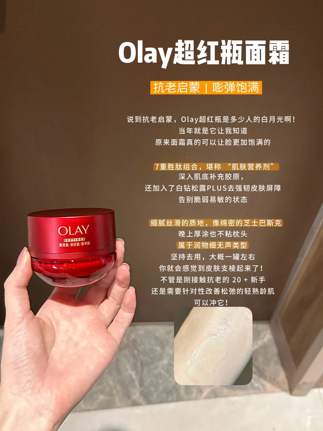 3⃣️olay超红瓶面霜:觉得自己面部松弛问题比较严重的可以试试这款,主打一个润物无声,慢慢填充胶原,坚持用个一罐会发现自己苹果肌嘭起来了,面中也变得立体了