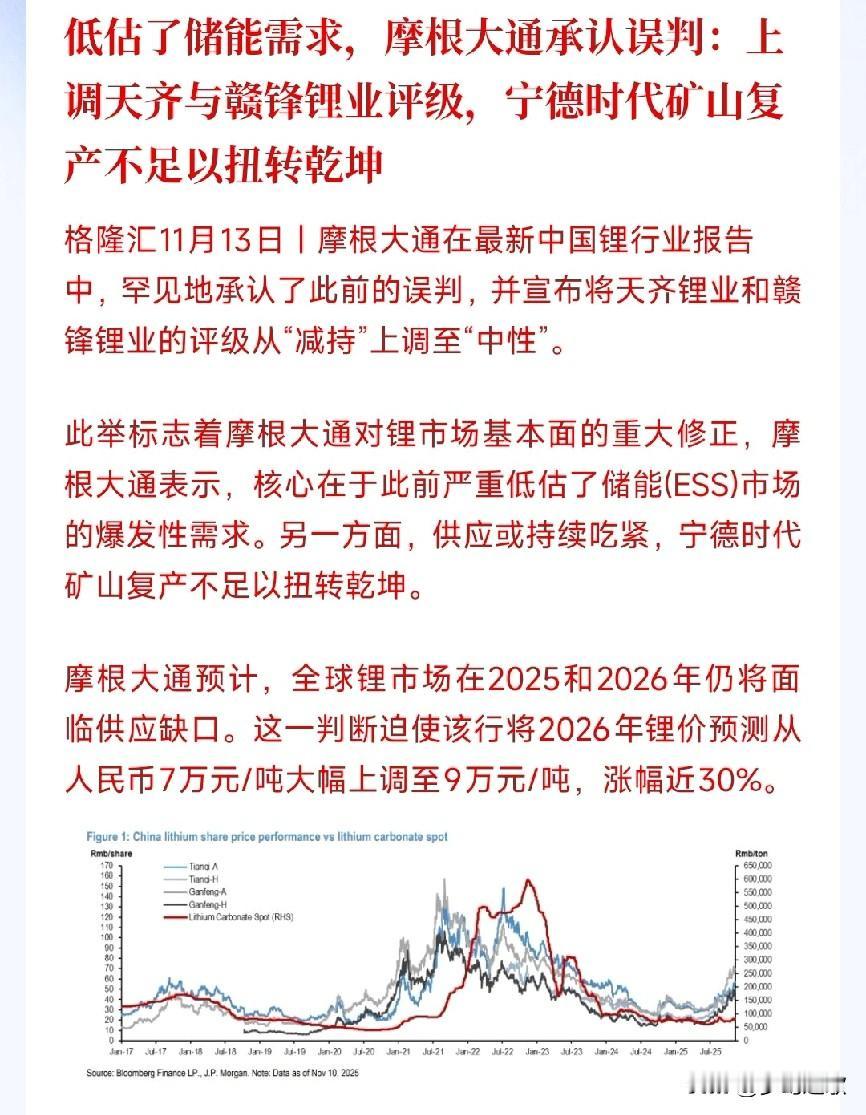 摩根承认错误,锂电池还将持续爆发 今年以来电池ETF已经涨了634.89%,就连国外大机构都承认了自己误判,认为锂电池会有持续缺口,甚至一度预测到2026年还会上涨2万元每吨,也就是还得涨将近30%,这是一个非常大的上涨。 资本市场锂电今年是唯一可以接力科技股的板块,在科技股调整的时候只有锂电能够承接资金并且能够活跃散户跟风效应的。 如果说今年牛市,那科技股和锂电池板块就是今年牛市的先锋,完全承接了资金,别的板块只是跟涨。 从摩根的预测看,未来锂电还有空间。