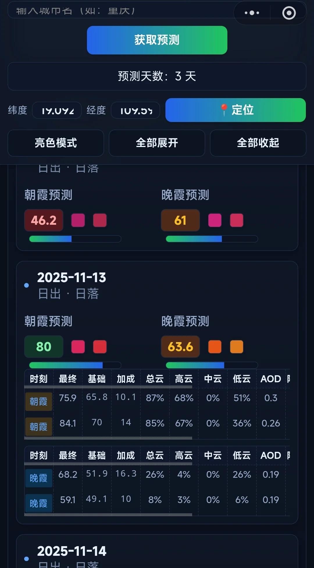 11.13|明天的朝霞预报地图 🔻珠三角可能会有层云遮挡,所以预报的质量并不高