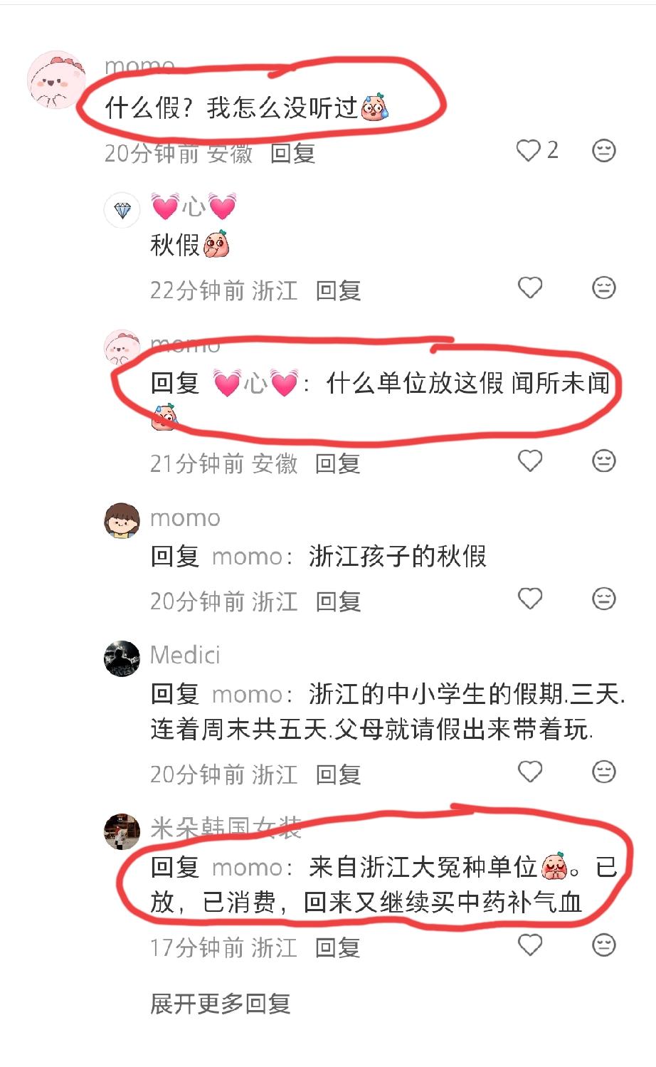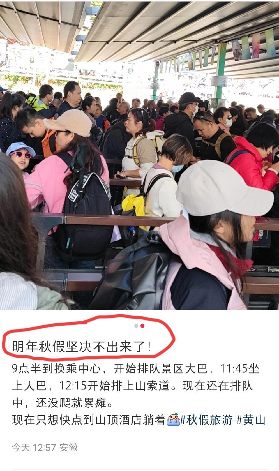 浙江网友发自安徽的一个吐槽帖子:9点半到景区换乘中心,快一点了还在上山索道这里排着队。 这位网友表示:明年秋假坚决不出来了! 评论区其他省份的网友一脸懵逼:什么单位放这秋假,闻所未闻! 评论区浙江网友一言难尽的表示:来自浙江大冤种单位。已放,已消费,回来又继续买中药补气血! 这还是浙江全省第一年给孩子们放秋假,以前就杭州一个地区放秋假。怎么给安排放秋假了,他们倒是一个一个的唉声叹气呢?其他省份的大人和孩子还求而不得呢!明年不给你们放估计又要叫了!