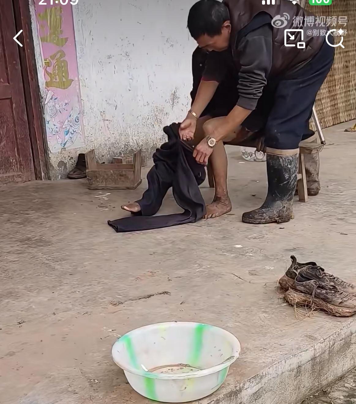 太可怜了,四川一乡村独居老人做饭不慎把自己烧伤了。看情况,老人是自己烧柴火做饭,可能眼神不太好,炉灶里的柴火把外面的柴点燃了,老人没注意到,等看到的时候老人用脚去踩,火把裤子点燃,大腿被烧伤。好心人要给他穿裤子,但是这样做不好吧,送医院看病才是当务之急,防止感染。火灾烧伤 烧伤 外卖员烧伤 在家烫伤