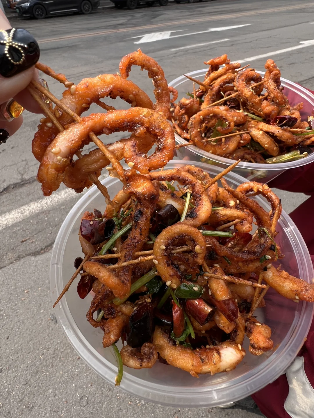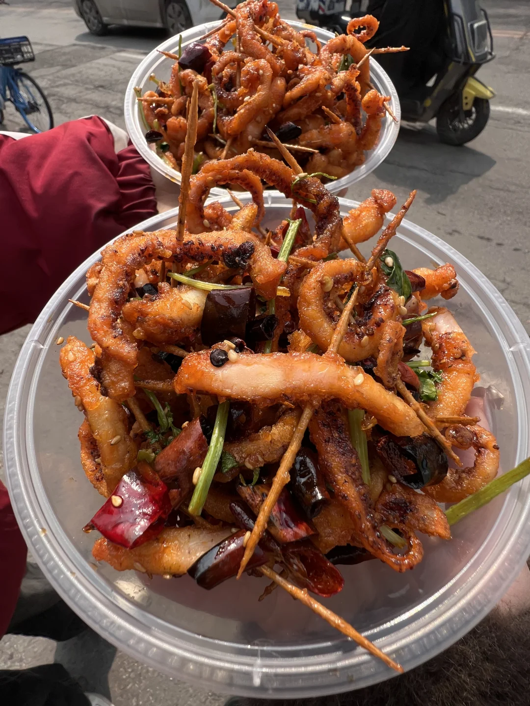 在沈阳吃到了本命鱿鱼须!!!酱汁好浓郁啊,外皮酥酥treetree的好Q弹!麻麻辣辣的~越吃越上头!!![哭惹R][哭惹R]一口一个!真香!