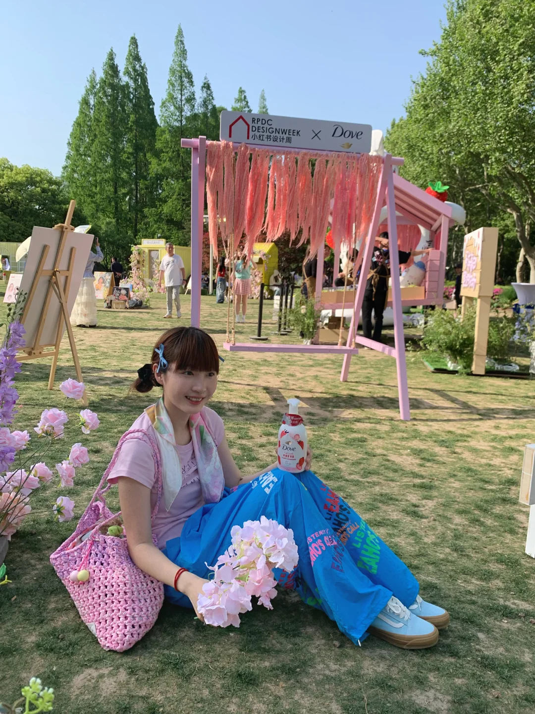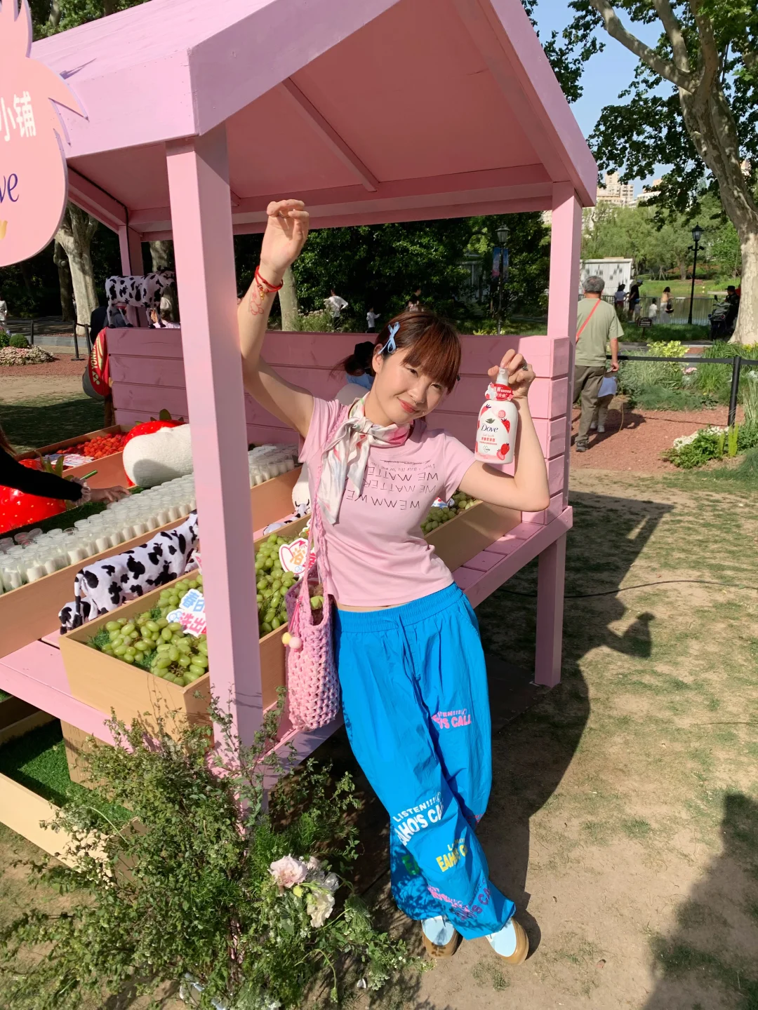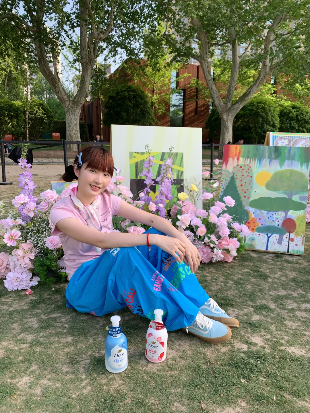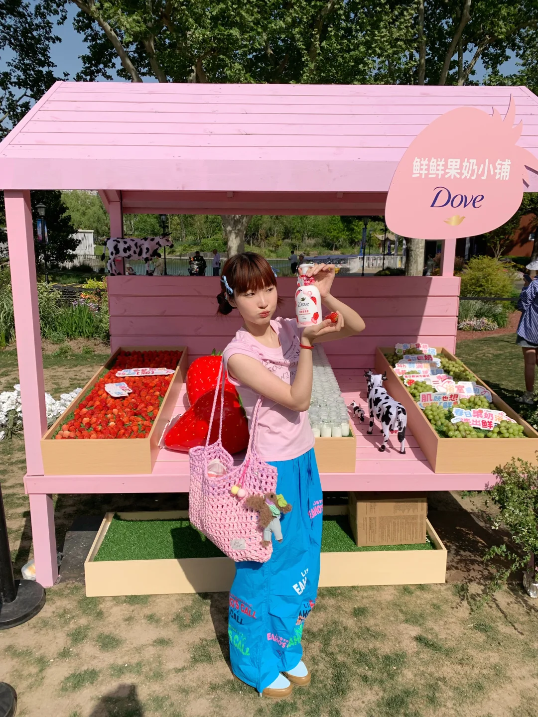 今天带着多芬果奶沐浴泡泡🛁来拍照啦!草莓味今天和我的ootd也很搭呢
