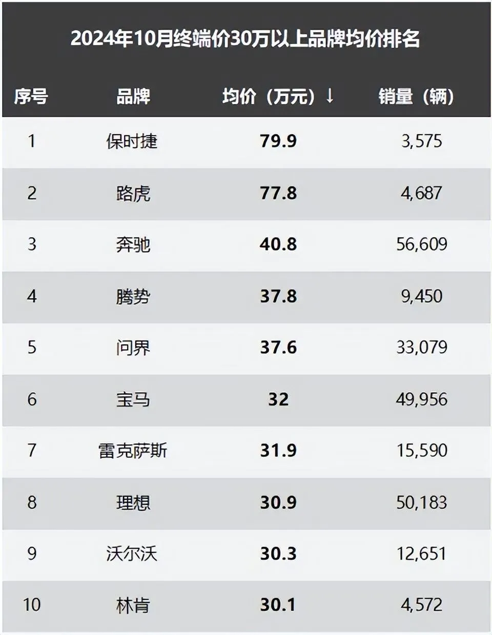 理想汽车一如既往地拿下了榜首,并且以51443辆的成绩遥遥领先,理想汽车目前的均价超过30万,按照燃油车时代的标准,绝对可以算作豪华品牌了,要知道,奥迪目前的平均成交均价,只有26.8万元。