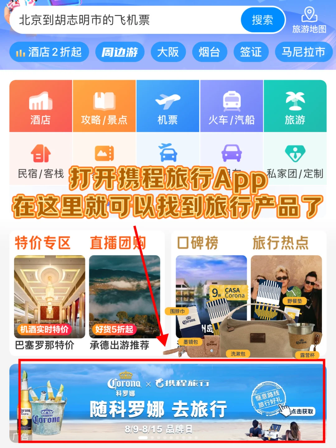 🔥同款旅行线路打开携程App(如图16)或是直接搜索科罗娜就可以找到