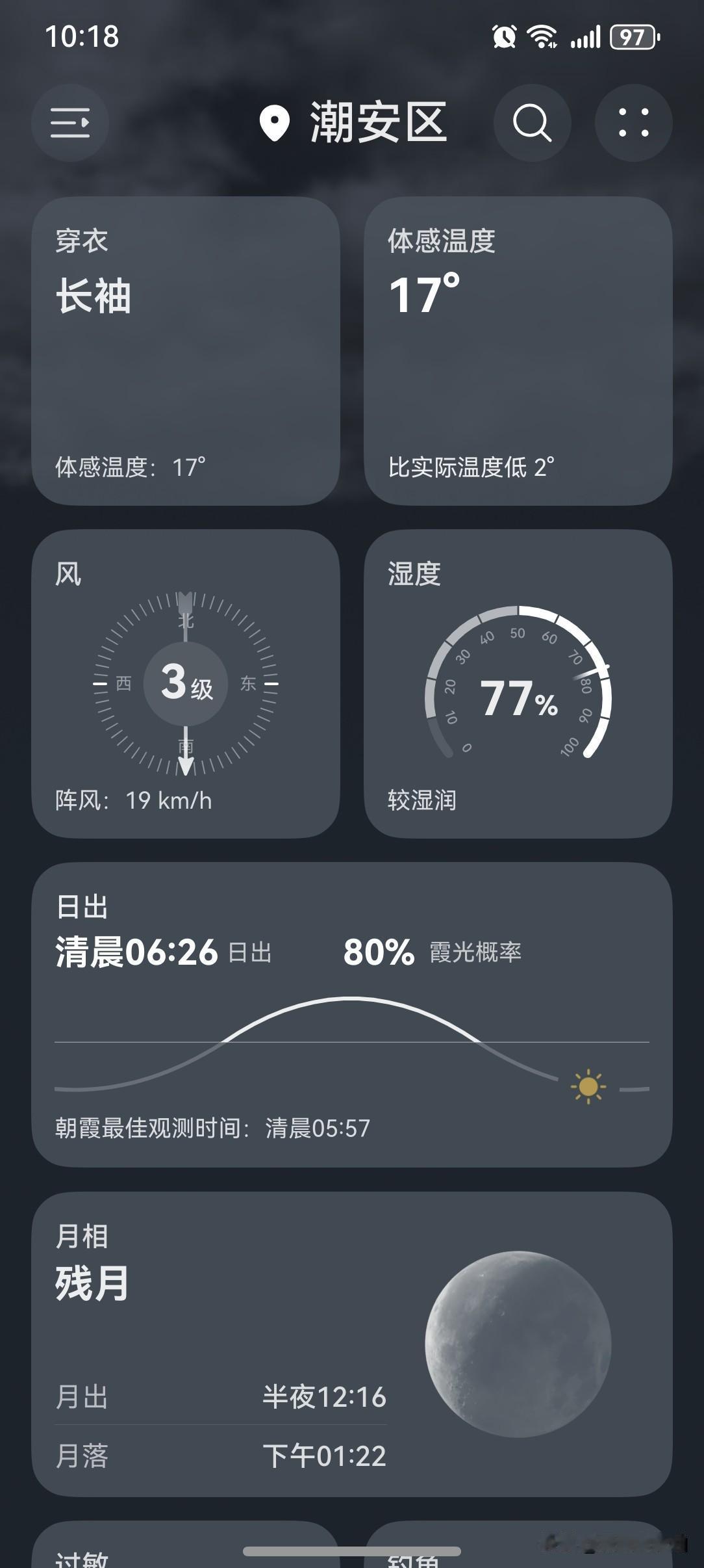 11月15日前, 中国大部地区气温总体明显高于常年同期。 但之后一股强冷空气将来袭, 中东部地区先后降温4℃至8℃, 本周末至下周初气温 将大范围创今年下半年来新低! 强冷空气继续南下! 广东下周要"冻"真格了! 广东人:厚衣服准备出场了! “省”被也要拿出来了! 防寒保暖措施需做足, 才能更好的远离流感病毒。 今天(13日), 潮州喜提一个阴天, 气温16~22℃, 此刻气温19℃, 体感温度17℃。 早晚是真的有点冷啊! 体感比实际温度低2℃。 今晚换成厚一点的被子, 应该可以睡个好觉了!