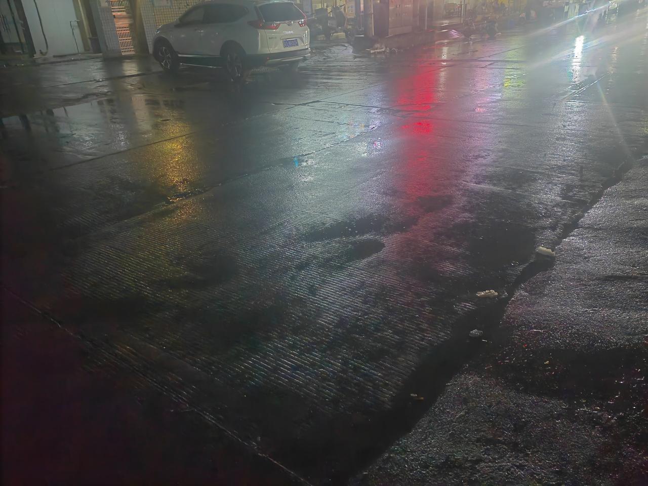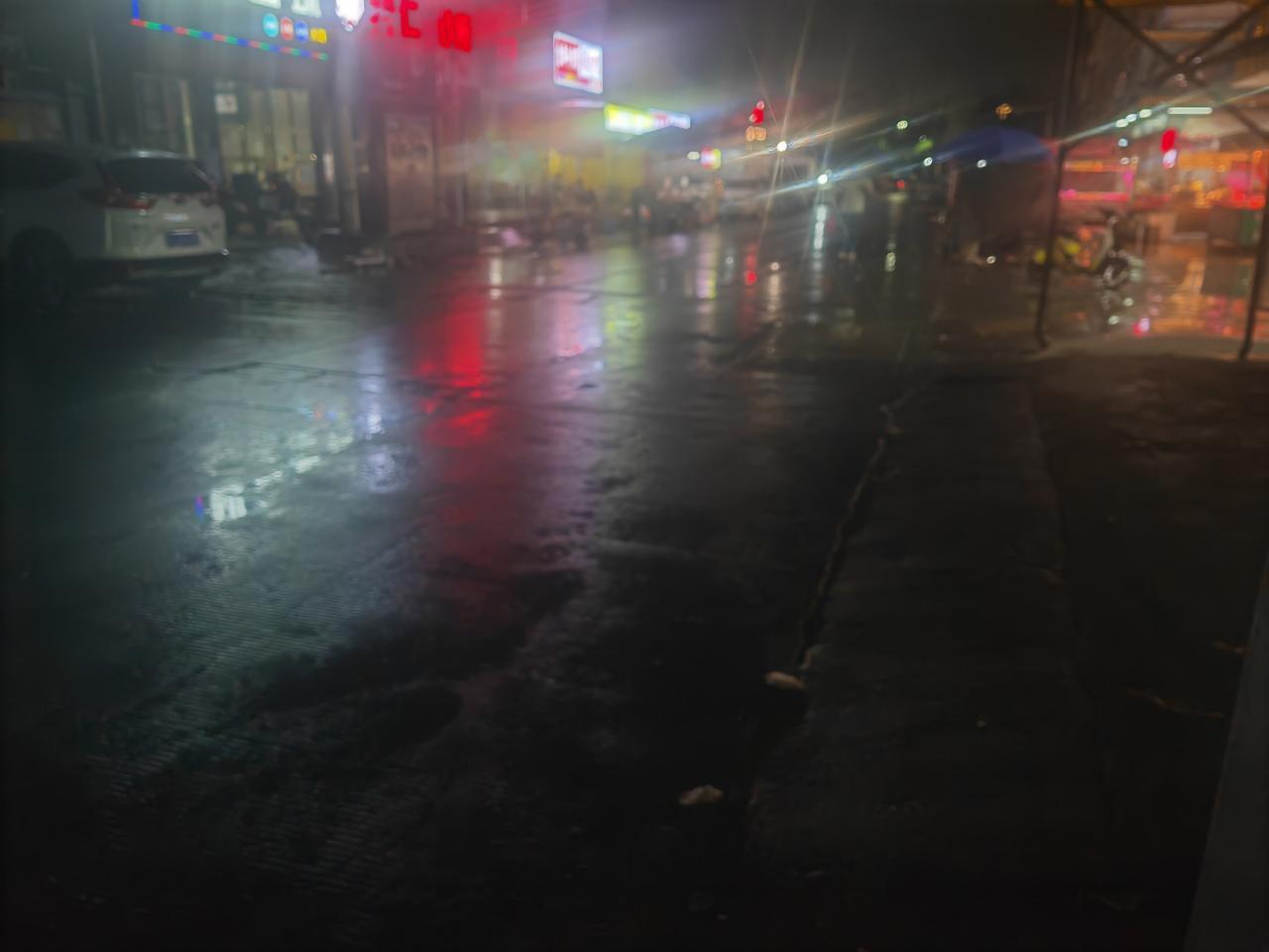 下雨咯,有两只小黑狗陪着我在大街小巷子里。狗子很乖,看到我有灯,就趴到我的桌子底下来了。 路上湿气很重,凉风直吹,我连袜子都没有穿。 买了好多零食,一边吃,一边看着马路边! 还会有人出来逛吗? 差不多12点了。 有上夜班的人会下班出来逛一逛吗? 我还在守摊啊![我想静静][我想静静] 快来一个人口啊!买点吃的,我好回家睡觉觉。[大笑]