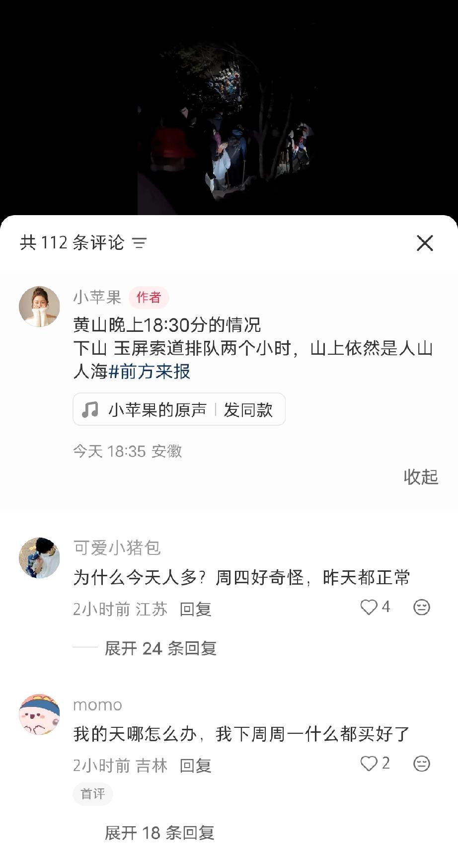 11月13日,网友在安徽黄山发文:晚18:30分,玉屏索道排队已经两个小时了,可山上依然是人山人海。 评论区部分网友就有点纳闷了:今天也不是周末,黄山上怎么会有如此多的游客,而且很多都是小朋友? 当然,评论区也给出了原因所在:这一切都是因为“浙大富”所有中小学校整出来了一个五天的秋假。因为是第一个全省范围内的秋假,有点经济实力的家长无不撒了欢的带着自己的孩子向四面八方出击,造成的结果就是全国各地出名的景点在这几天无不人满为患! 浙江的秋假还有几天,国内著名的景点接下去在这方面都要做出备案,切不可出点啥事!