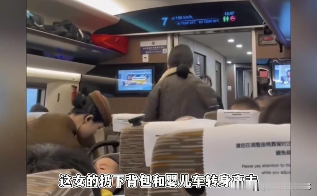 宝妈推童车堵死高铁过道,丢下孩子扬长而去。 11月7日G72次高铁上,列车即将到站,乘客们都提前收拾好行李,在门口等着下车可一位宝妈却推着童车,直直地堵在过道中间,既不往后退,也不往旁边让,把一车厢人的路都给挡死了。 两名乘务员赶紧过来调解,甚至提出由她们来推童车,只希望她能让个路。结果这宝妈直接扔下背包和童车,还潇洒地脱掉外套,转身就走了。 大家后来发现,童车里的孩子都两三岁了,看着都能打酱油了,而且全程睁着眼睛,根本没在睡觉。宝妈就是拿孩子当借口,任性占道。 网友们看完这事,纷纷表示这种人太没公德心了,就该把她列入铁路黑名单,让她一辈子都坐不了高铁和火车。对此你怎么看?
