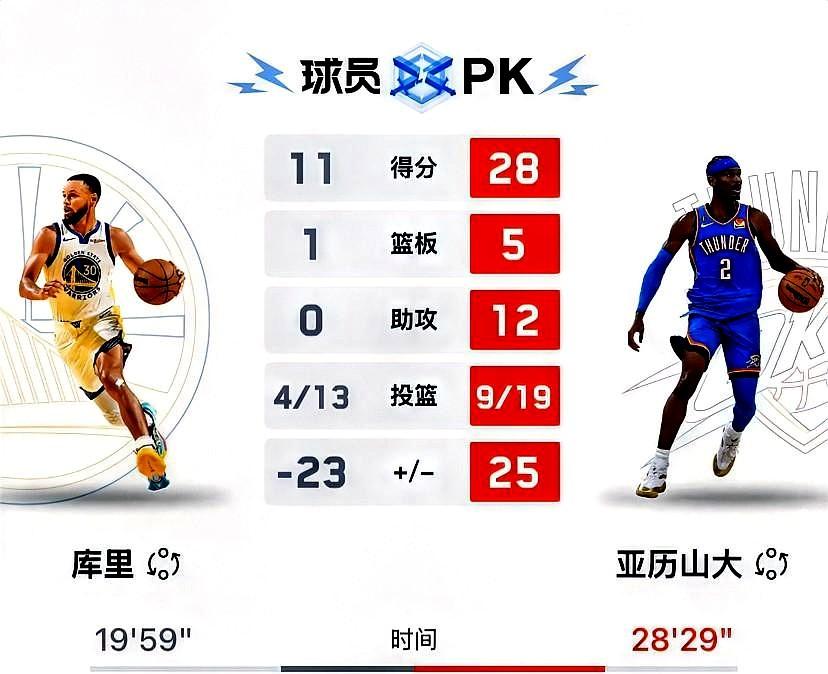 彻底花了! 勇士三节落后35分,库里复出首战5犯,三节打卡下班。 他本人也吃到了职业生涯第一次恶意犯规。 最终,库里的数据定格在11分5犯规,正负值-23。 亚历山大是当今NBA的球王,不是碰不得,就连靠近都不行。 压力山大确实猛,可能已经是历史第二分位了,仅次乔丹。 老将集体退场,字母和约胖子也无力抗衡亚历山大和77 勇士摆烂吧?输得没眼看?老的不行,年轻的也不行,重建吧!