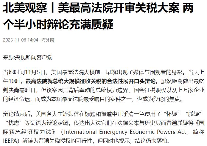 特朗普急火攻心,2万亿美元的赔款,是美国无法承受的代价! 要说这事儿的根子,得追溯到今年春天那些撑不下去的美国小企业。华盛顿州有家做教育玩具的公司,老板对着账本愁得掉头发,进口塑料零件的关税一涨再涨,原本薄利的积木玩具硬是被逼到了亏本边缘。 差不多同时,纽约一家烈酒进口商也忍无可忍,从法国进口的白兰地关税加了三成,仓库里的存货卖不动,新订单不敢接,只能咬着牙起诉政府。谁也没料到,这两起看似普通的企业维权案,会一步步捅到最高法院,变成撼动总统贸易权力的宪法级官司。 11月5号那天,最高法院大楼前的记者比游客还多,这场延长到两个半小时的听证会,几乎全程都弥漫着大法官们的怀疑情绪。 特朗普政府派来的可是王牌律师——司法部诉讼总长绍尔,这位被称为“第十位大法官”的狠角色,一开口就把关税和“国家安全”绑在一起,说总统有权依据《国际紧急经济权力法》采取措施。可话刚落地,首席大法官罗伯茨就追问:“你管这叫监管,可本质上这不就是征税吗?国会的征税权啥时候给总统代劳了?” 接下来的追问更是刀刀见血。大法官巴雷特拿着法律条文逐字抠,逼绍尔解释“监管进口”怎么就等同于“加征关税”;戈萨奇干脆点破三权分立的核心,直言要是总统能随便加税,国会岂不成了摆设。 连向来偏保守的卡瓦诺都翻起了旧账,拿历史上的临时关税和现在这种覆盖几乎所有商品的长期政策对比,言外之意就是“别拿紧急状态当挡箭牌”。整场听证会下来,美国媒体的标题全是“质疑”“忧虑”,明眼人都看得出来,特朗普政府的底气越来越弱。 更让特朗普坐不住的是,这事儿早就不是政府和企业的对垒了。加州牵头的十几个州直接站到原告那边,提交的法律意见里把“分权”俩字喊得震天响,说征税权是宪法给国会的,白宫不能越界。 参议院更是直接以51票对47票通过决议,要求取消关税政策援引的“国家紧急状态”,等于给特朗普来了记釜底抽薪。他急得在社交媒体上连发十几条帖子,警告“败诉就是国家安全灾难”,这话听着夸张,可算起账来真不是唬人。 特朗普嘴里那2万亿美元的窟窿,可不是随口编的。首先是已经进了国库的关税收入,这些年靠着加征关税,联邦政府一共搂了差不多8000亿美元,一旦政策被裁定非法,这些钱都得连本带利还给企业,光是利息就得搭进去几百亿。 更要命的是企业的损失赔偿,俄亥俄州的农场主因为关税丢了中国市场,玉米价格跌了三成,光这一项索赔就有上千亿;底特律的汽车厂商进口零部件成本涨了15%,积压的订单损失早突破了两千亿。 再加上供应链动荡导致的投资缩水,比如很多企业因为关税不敢扩大生产,原本计划的工厂建设全停了,这些隐性损失算下来,2万亿美元都打不住。 要知道,美国去年的GDP才刚过27万亿美元,2万亿差不多是全年财政收入的三分之一。真要掏这笔钱,要么大幅削减社保、基建预算,要么就得借更多国债,不管哪样都得引发民怨。 特朗普最近天天催着司法部搞“舆论战”,又是说“法官被自由派洗脑”,又是喊“外国势力在干涉”,本质上就是想给最高法院施压。他甚至破天荒地让财政部长贝森特亲自去听证会旁听,明着是撑场面,实则是急着掌握第一手消息。 其实这事儿的本质,就是特朗普当年想靠“美国优先”的关税捞政治资本,结果玩脱了。他以为靠总统权力就能随便加税,既讨好选民又能逼其他国家让步,却忘了美国的三权分立不是摆设,更忘了经济规律的厉害。那些当初被他吹成“保护美国产业”的关税,到最后变成了压在企业头上的石头,现在更是成了悬在国家财政上的达摩克利斯之剑。 最高法院的判决要等到明年六七月份才会出来,但现在的风向已经很明显了。就算大法官们不直接判政府败诉,大概率也会通过“技术性调整”限缩总统的关税权力,比如要求今后加税必须先拿国会授权。特朗普最近总说“这是美国史上最大的司法不公”,可在企业和州政府看来,这不过是在纠正一场越界的权力游戏。 说到底,2万亿美元的赔款只是表象,真正让美国扛不住的,是贸易政策的混乱和权力边界的模糊。你不能靠着拍脑袋加税来解决问题,更不能把国家经济当成政治博弈的筹码。 特朗普的急火攻心,与其说是担心官司输了,不如说是怕自己的政治遗产彻底泡汤。而对美国来说,这场官司不管输赢,都该明白一个道理:在全球化的今天,搞单边主义从来都是双刃剑,伤了别人,最终也会扎到自己。