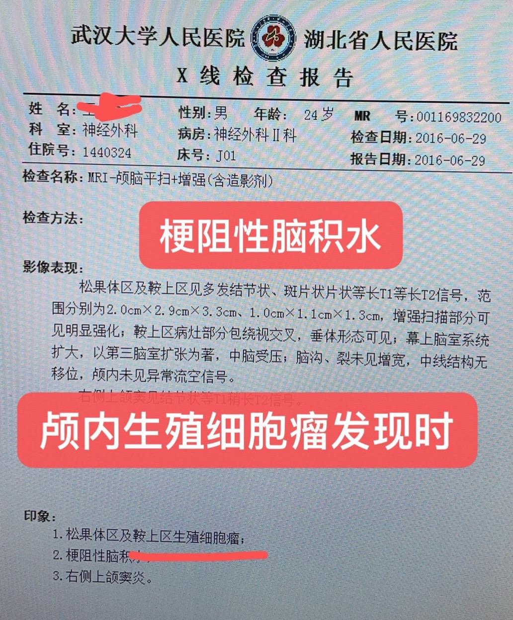 颅内生殖细胞瘤,治愈已近十年,且育有子女。全脑全脊髓30GY,局部加量20GY增加到50GY,杀灭肿瘤,保护脑功能,精准放疗的技巧!