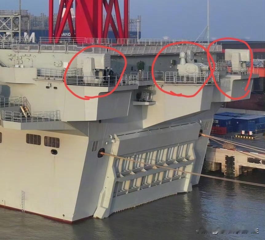 嘿嘿,咱们076大平板这屁股位置处的防护也是武装到牙齿了哦![呲牙][呲牙][呲牙] 从水门上方布置的三座点防御来看,左舷位置一座HHQ-10,右舷位置一座HHQ-10,而中间则是一座新型的1130万发近防炮系统,组成交叉拦截火力。 这还不算,咱们前舰岛上方还单独布置有一座HHQ-10,另外还有左右两舷合一座1130万发炮,总体布置成3+3的强悍火力拦截配置。 不过老实说看完了咱们的9.3大阅兵,感觉要是再增加2套FK-3000那样的30炮+96单元微型防空导弹上舰,那就更合适不过了,真希望后面型号能出现![泣不成声][泣不成声][泣不成声]