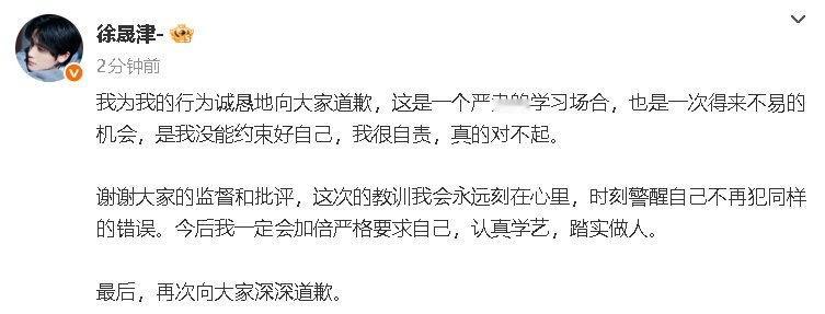 徐晟津发文道歉,年轻就是好啊,《星辰大海》的课都睡觉!