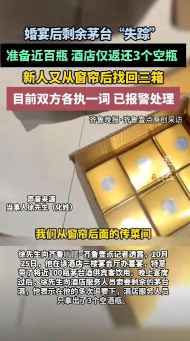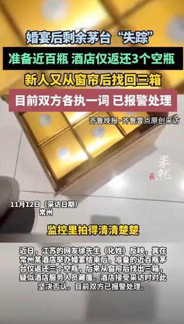 江苏一男子在酒店办婚宴,带了近百瓶茅台待客,结果宴会结束,酒店却只返还3个空瓶,一开始他以为喝完了,不料,却在角落窗帘后找到3箱酒,他质疑酒店人员藏匿,酒店坚决否认,双方僵持不下选择了报警。 江苏最近的一场婚宴,本是欢欢喜喜的大事,没成想宴散后却闹得满肚子火气,还跟酒店起了争执。 事儿得从办喜当天说起,杨先生(化名)为了答谢来的亲友,自己掏腰包带了近百瓶茅台,全摆上了酒桌,宾客们吃得开心、喝得尽兴,婚宴看着挺圆满。 可等吃完之后清理的时候,酒店管理人员就只给杨先生了三个空酒瓶子。 一开始杨先生没太在意,想着可能是客人顺手把空瓶带走了,或者落在了餐桌底下没找到,也就没多追问。 可后来他竟在宴会厅的一处窗帘后面,意外发现了整整三箱没开封的茅台,这一下,杨先生的疑虑全上来了,好好的酒怎么会藏在窗帘后面。 他立马找酒店工作人员要说法,觉得这些酒要么是被故意藏起来了,要么就是酒店没按约定交还,甚至可能有人想私自挪用。 酒店那边却不承认,说宴会结束后,工作人员都是按惯例统一清点,然后分类处理空瓶的,窗帘后面要是有箱酒,大概率是客人临时放在那儿,或者打包的时候不小心落下的,跟他们没关系。 两边各说各的理,语气越来越冲,原本喜庆的氛围一下就变紧张了,最后没办法,双方都同意报警,还让警方和酒店管理方一起查监控、对盘点记录,想把事儿弄明白。 网上不少人也在讨论这事,有网友站杨先生这边,觉得茅台不便宜,酒店在这种场合得负起保管和交接的责任,劝杨先生坚持要回损失,让酒店公开监控和盘点记录。 也有网友劝大家冷静,说先把监控调出来,跟现场证人和清单对一对,别凭着情绪指控,万一弄错了还会损害别人名誉。 目前警方还在跟双方协商、核查,不管最后结果怎么样,这事儿都给要办婚宴的人和酒店提了个醒,涉及贵重东西交接,光讲面子、靠信任可不行,得有制度和证据。 准备办婚宴的家庭,提前把酒水交接的细节说清楚,留好买酒和装箱的凭证,让酒店开接收单据,这是对自己负责,也是对别人负责。 酒店把流程完善好,做事透明点,既能少惹麻烦,也能攒下好名声,做生意,口碑和责任心都重要。 对此,你还有什么看法呢? (信息来源 :齐鲁晚报 )