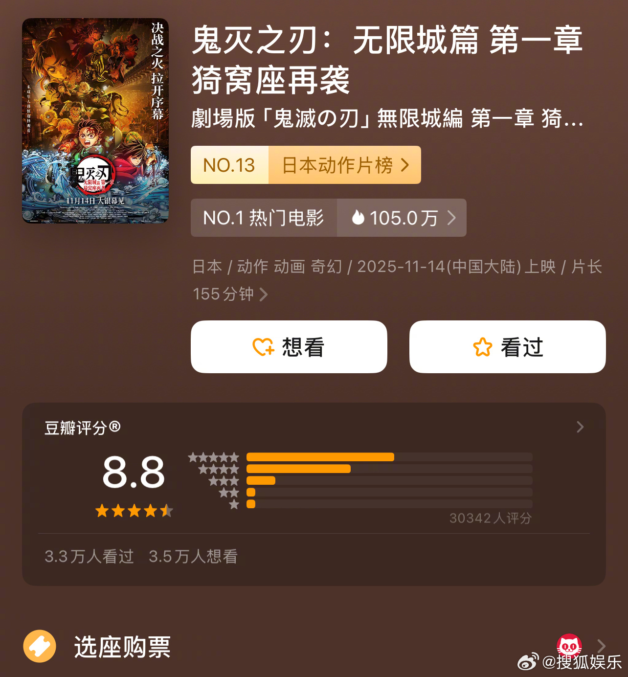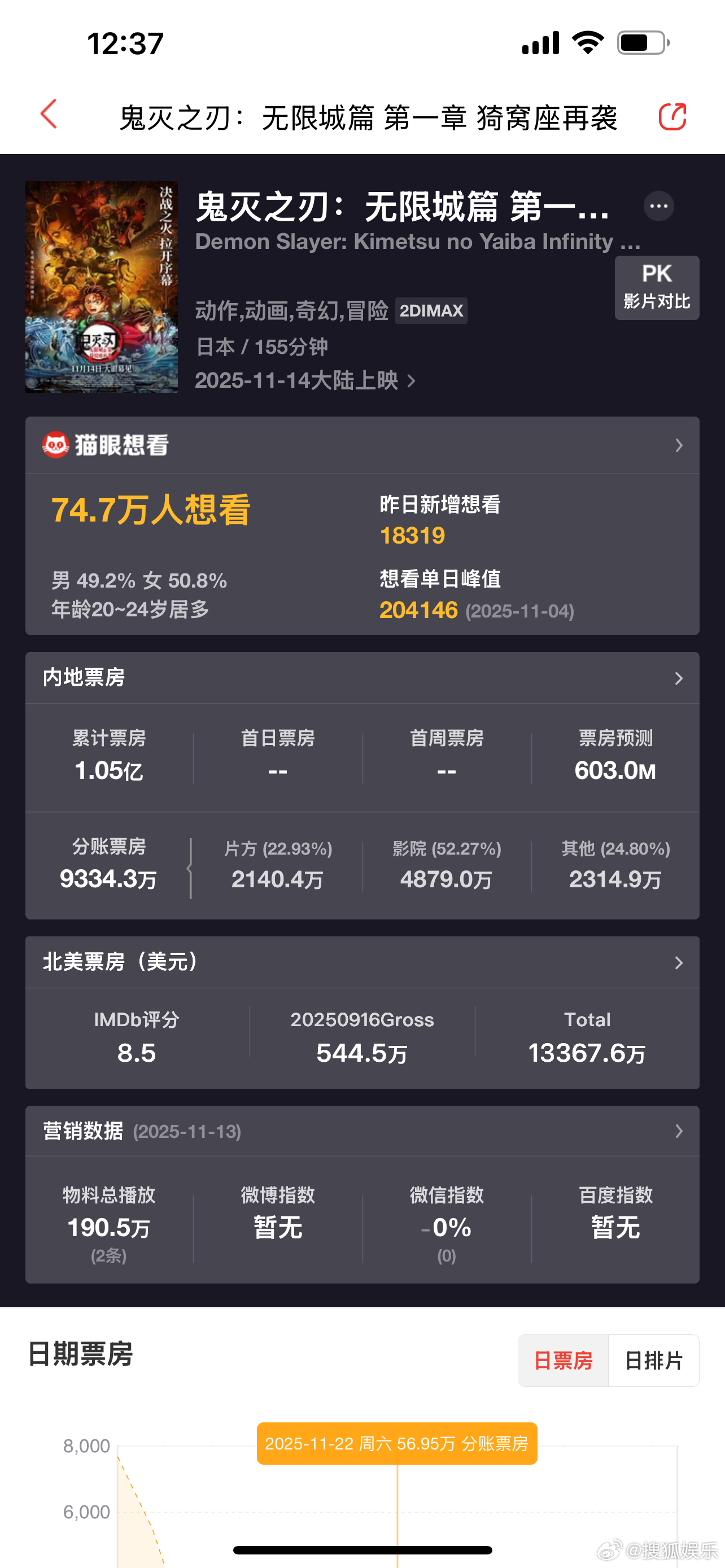 《鬼灭之刃:无限城篇第一章猗窝座再袭》票房达6.03亿,将刷新日本...