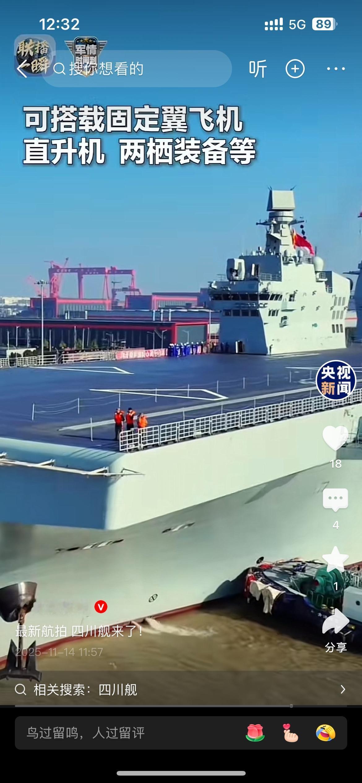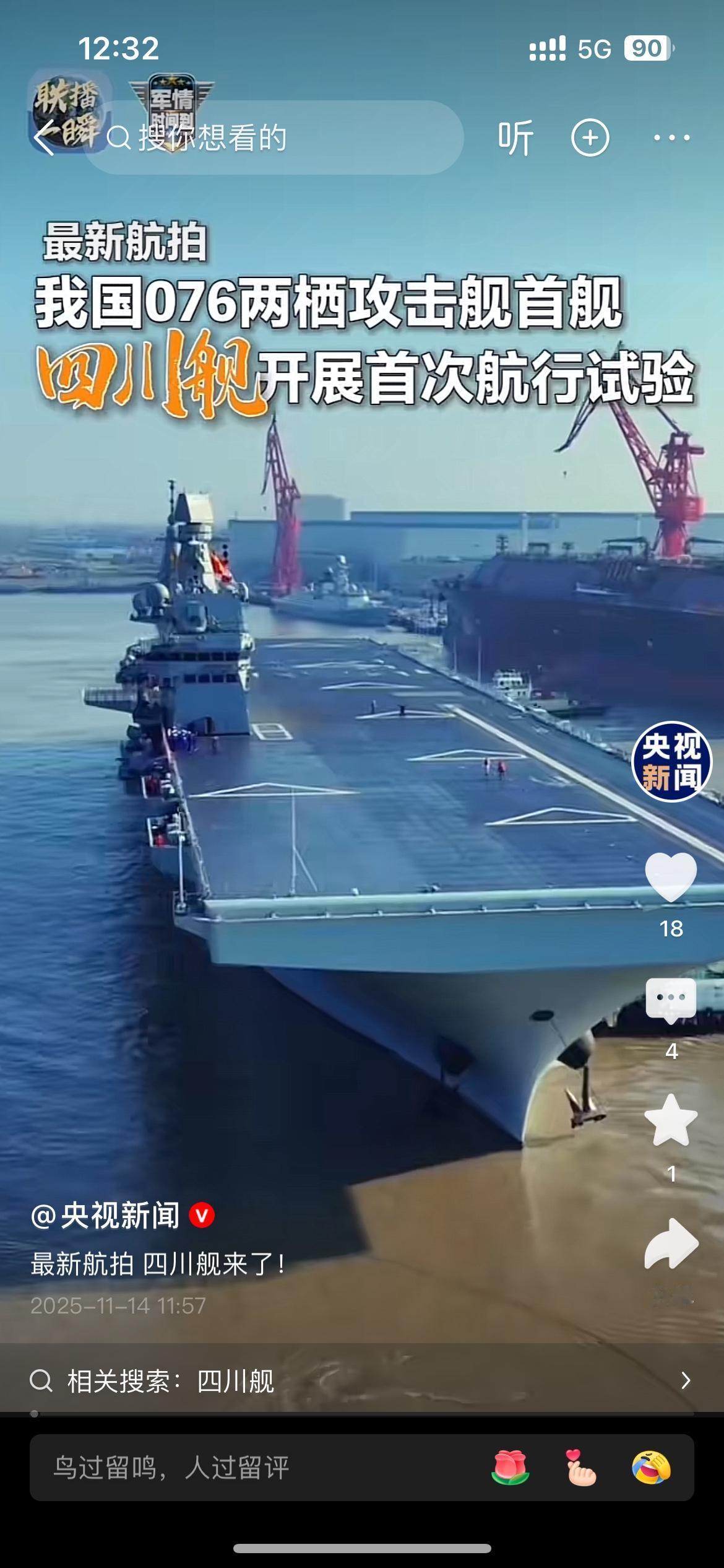 全网呼叫“四川舰”,现在她来了,开始了她的首次航行试验。看着四川舰颜值“超帅”,,现在让航母下饺子有点困难,让076型两栖攻击舰下饺子也可以!毕竟以后两栖作战是重点。 四川舰076型两栖攻击舰,满载排水量4万余吨,这次她也带了个余字,余多少吨? 通直大平板,干净整洁,颜值就是战斗力,其创新应用电磁弹射和阻拦技术,搭载固定翼飞机和直升机、两栖装备,就这配置目前也是世界的独一份!