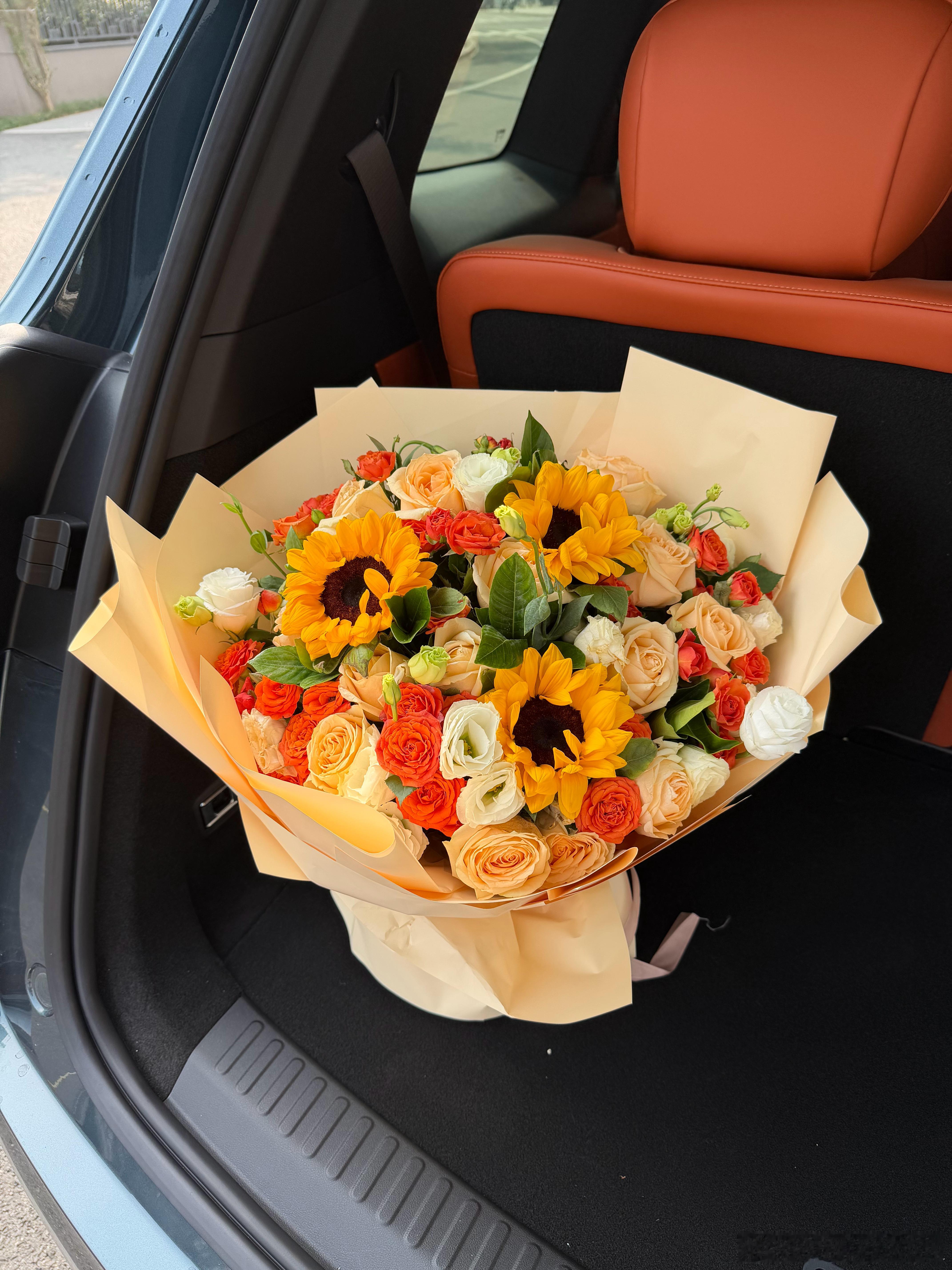 今天过来给银河M9来装电动踏板 销售说上次提车匆忙 花忘记拿了 今天给我补上了 这个花是目前是我提这么多车鲜花最大最显眼的一次 情绪价值拉满