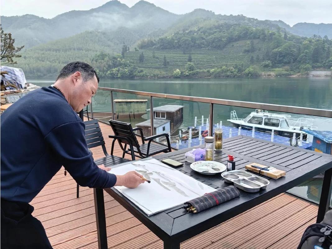 上联:陶人抟泥塑春山 下联:画匠调色摹秋水