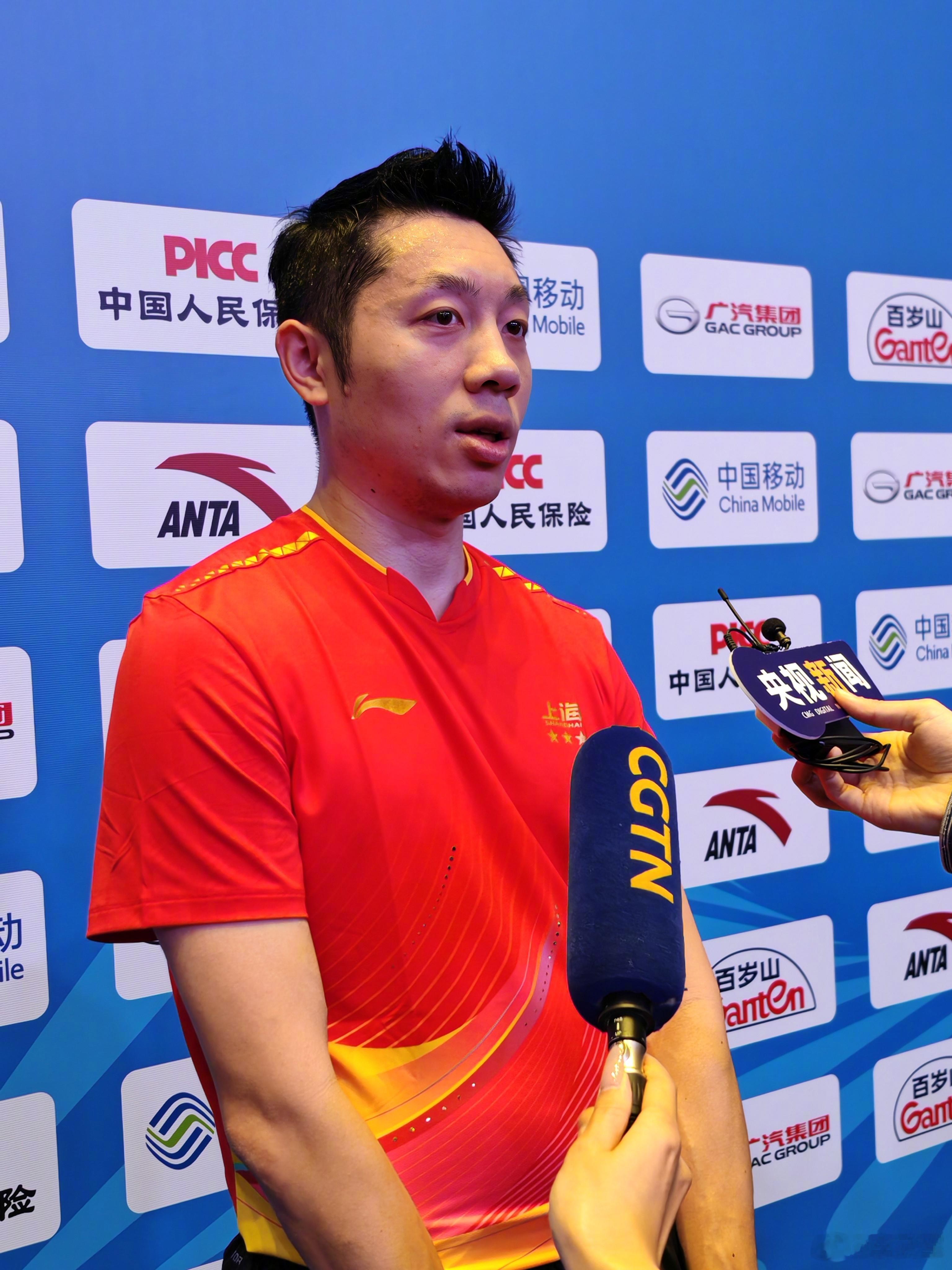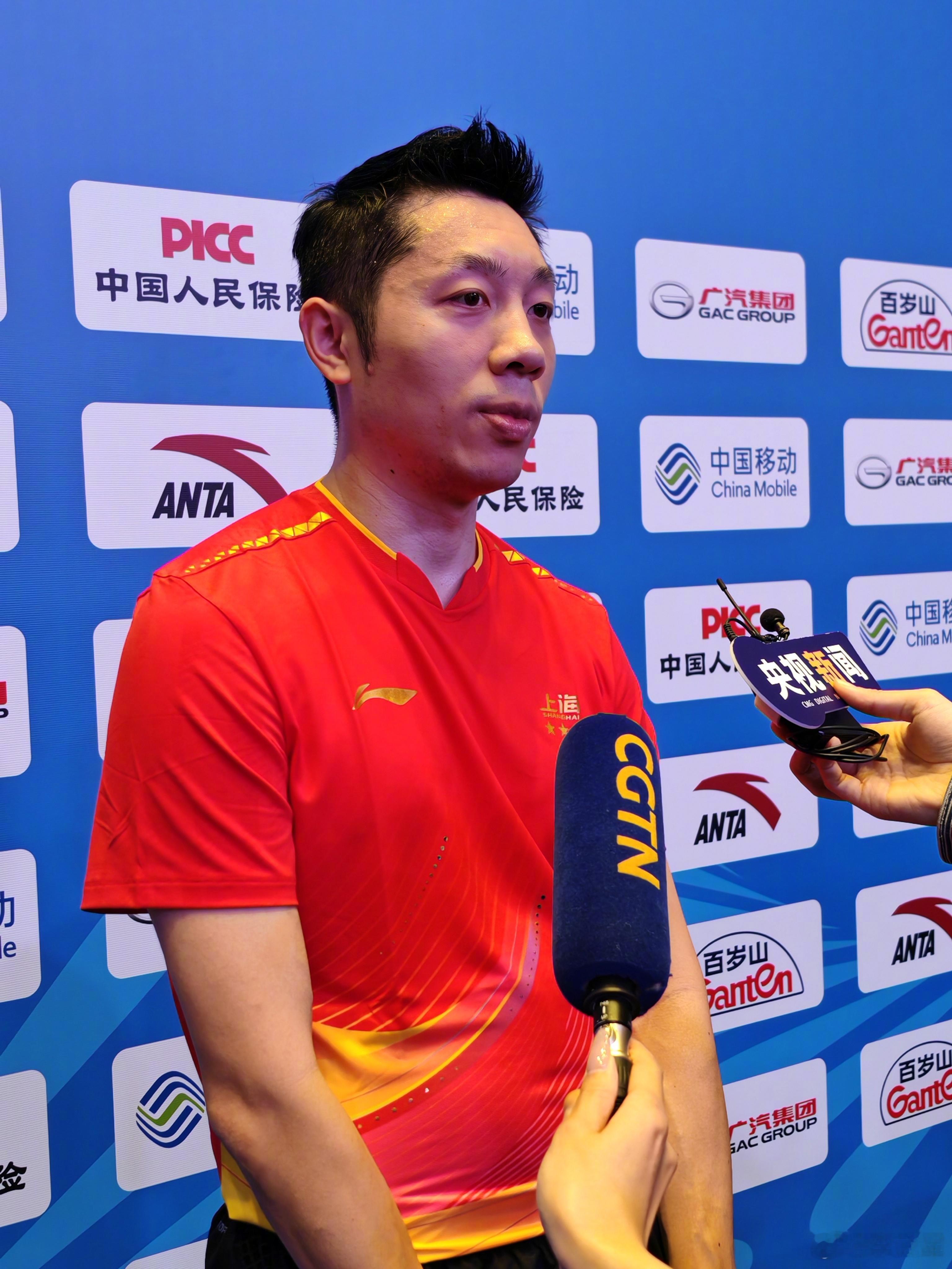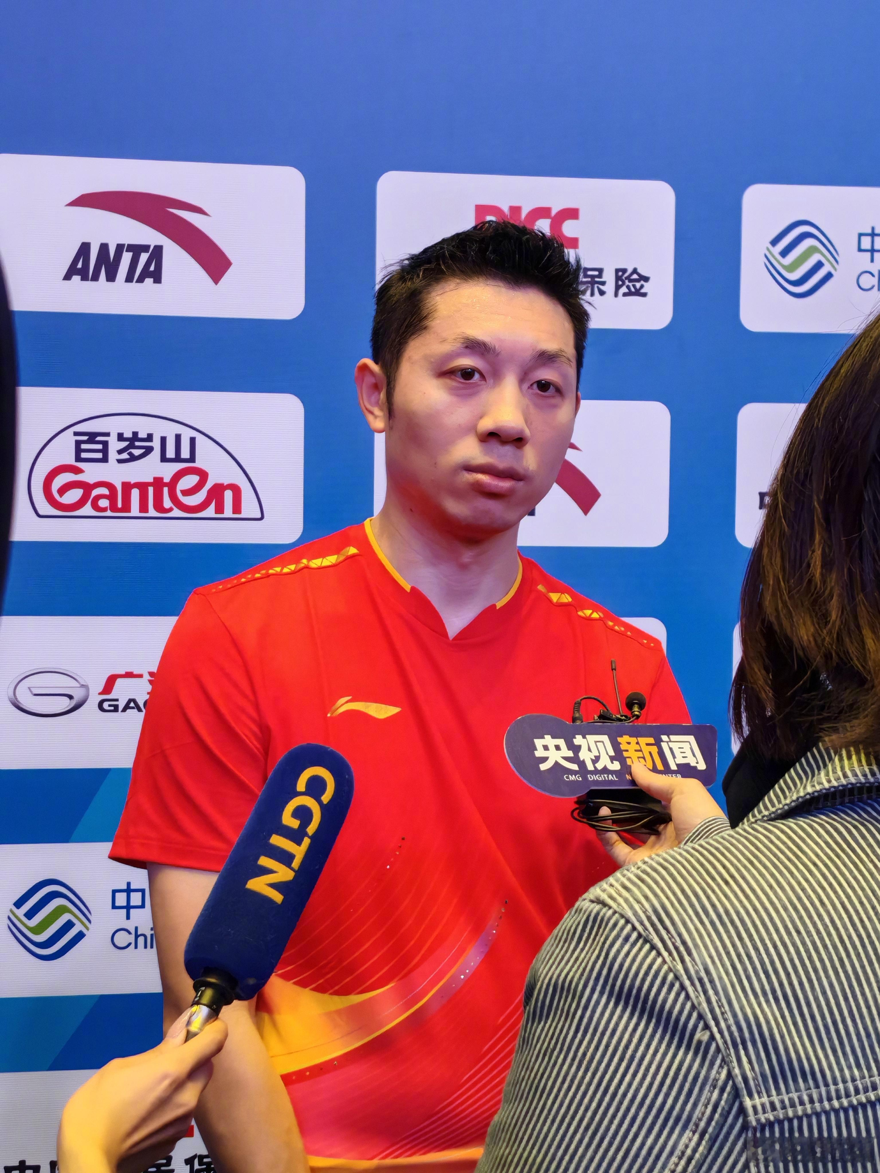 在混采区,樊振东接受媒体采访!