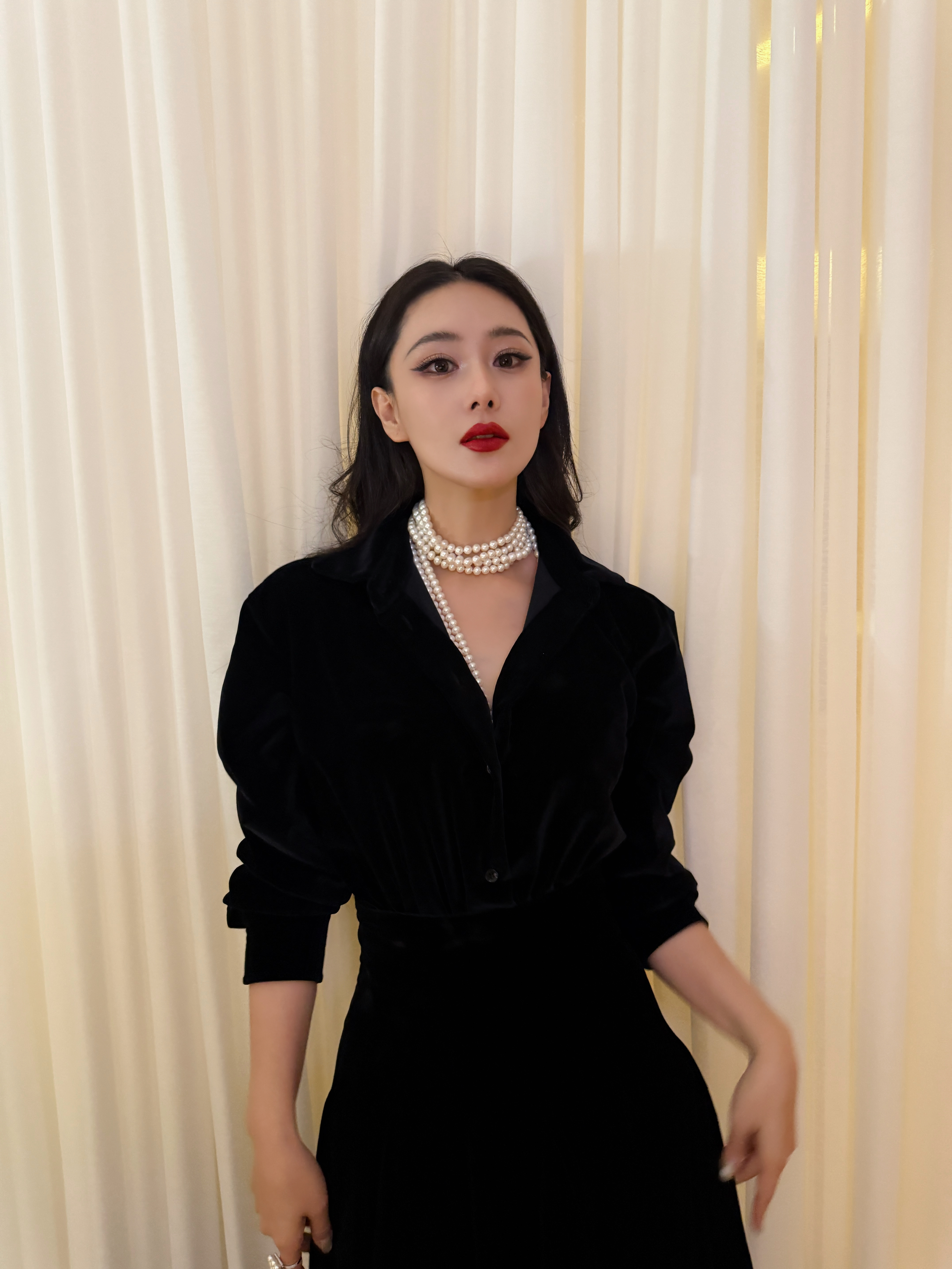 刘亦菲这条裤子挺养生,毕竟降温了肚脐眼必须护住啊