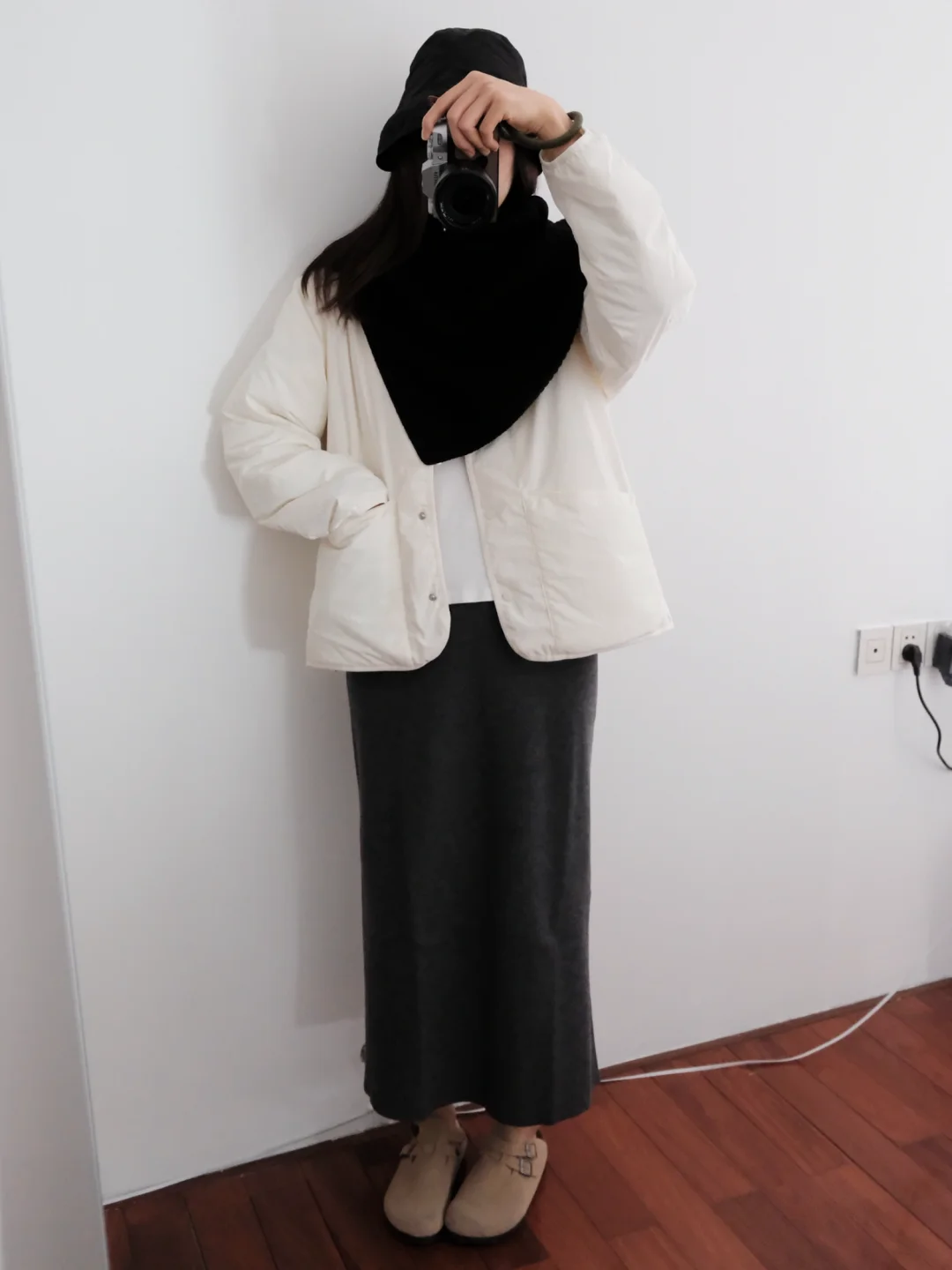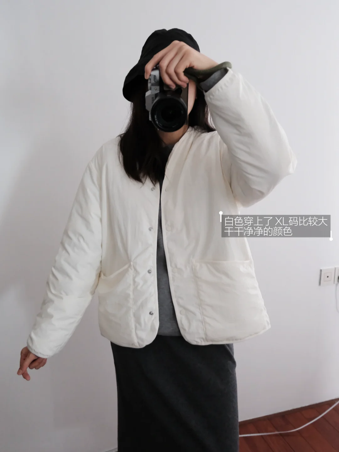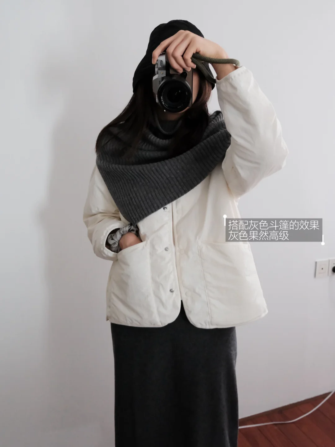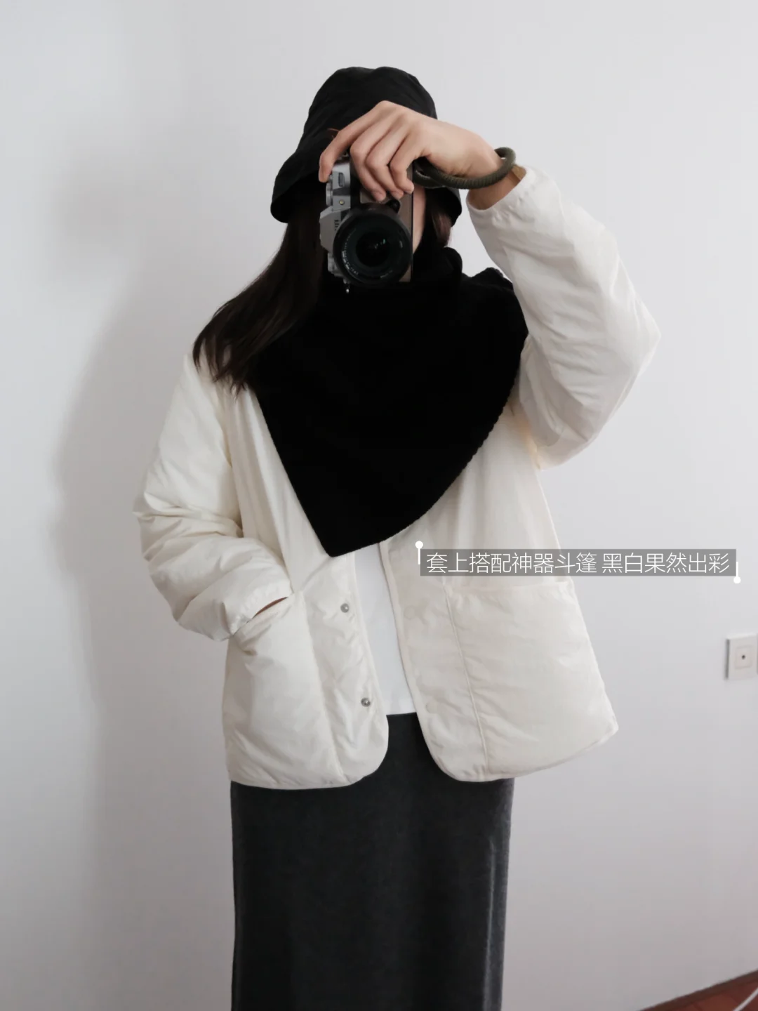 Muji白色无领羽绒服和黑灰斗篷 简单舒适✨