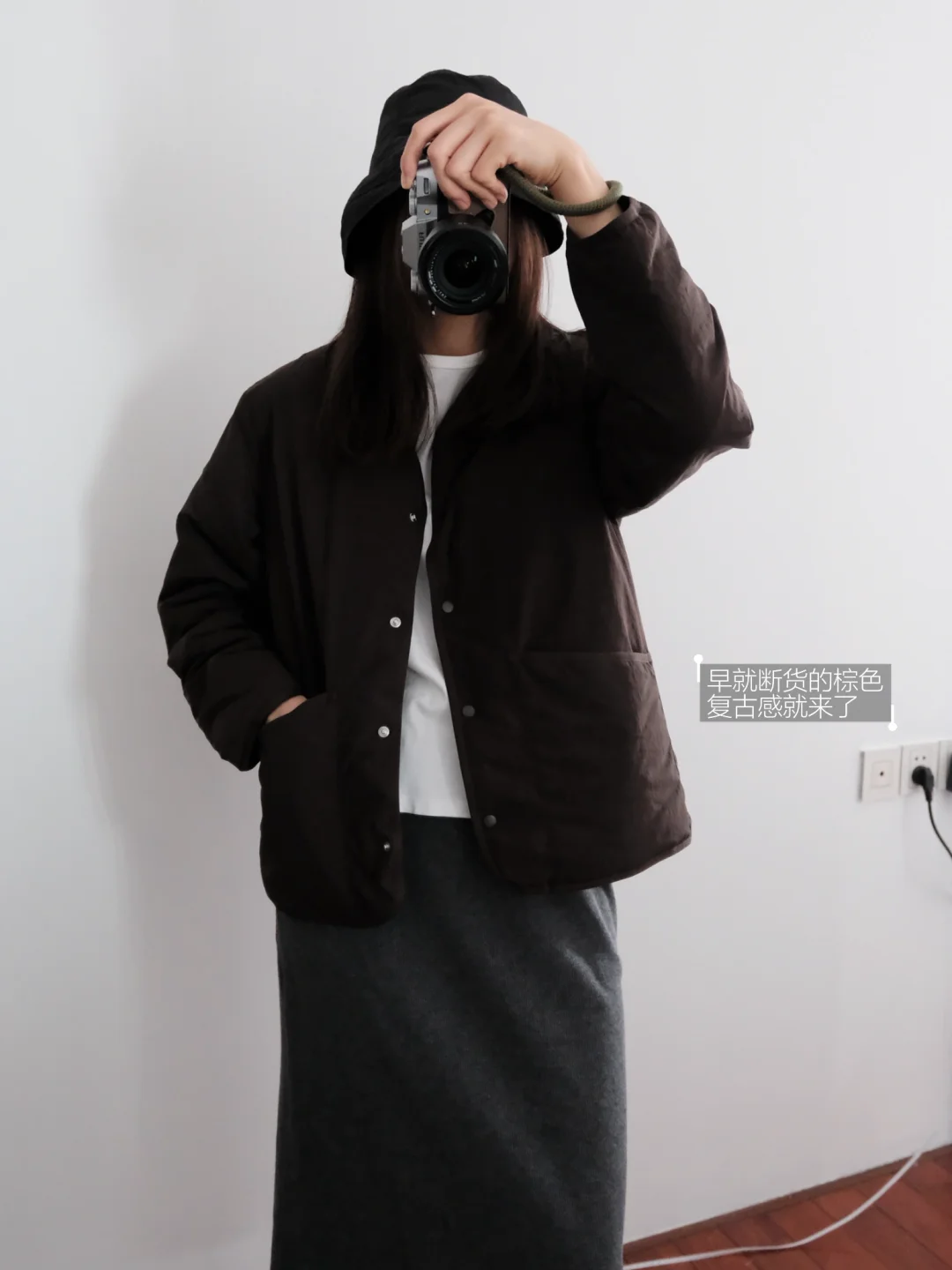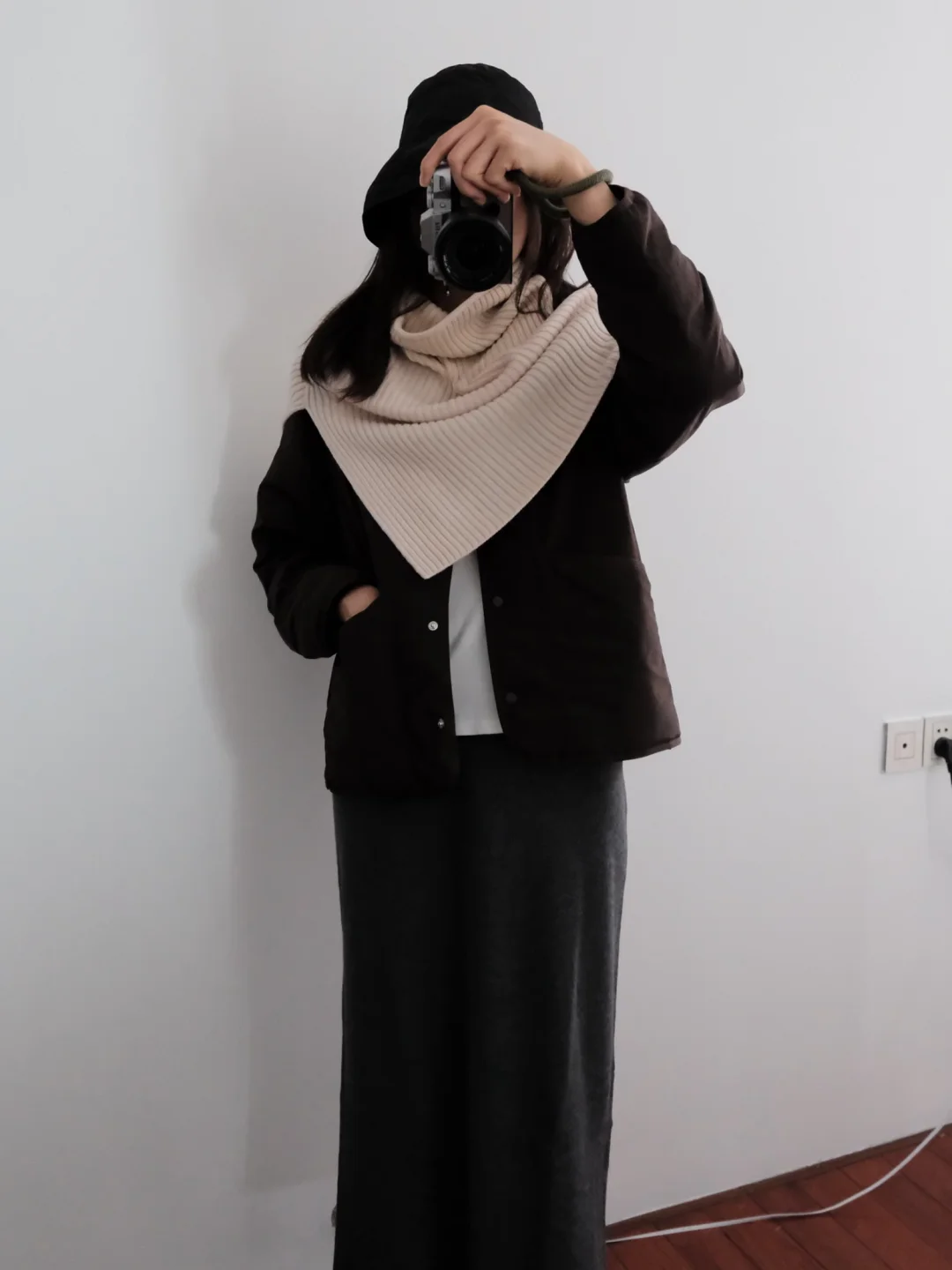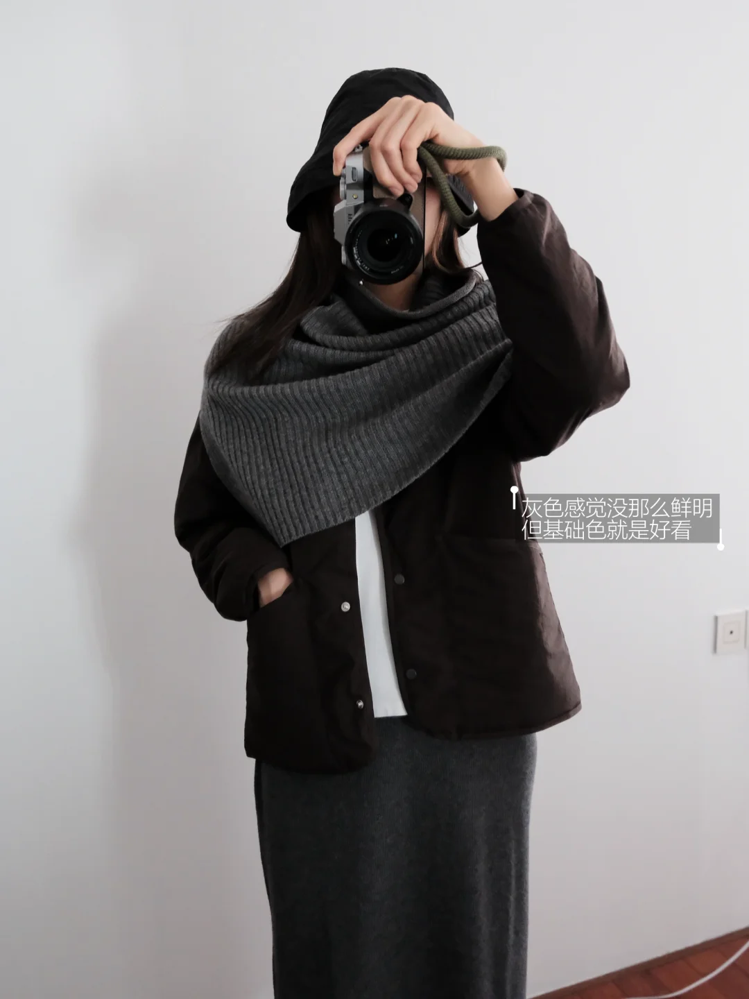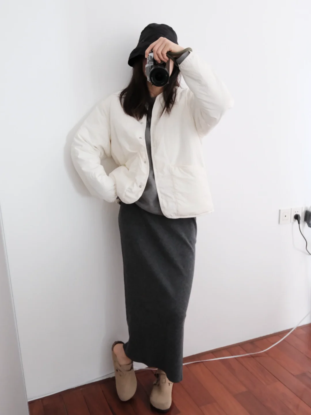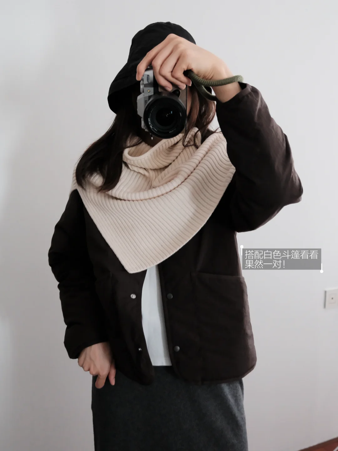Muji白色无领羽绒服和黑灰斗篷 简单舒适✨