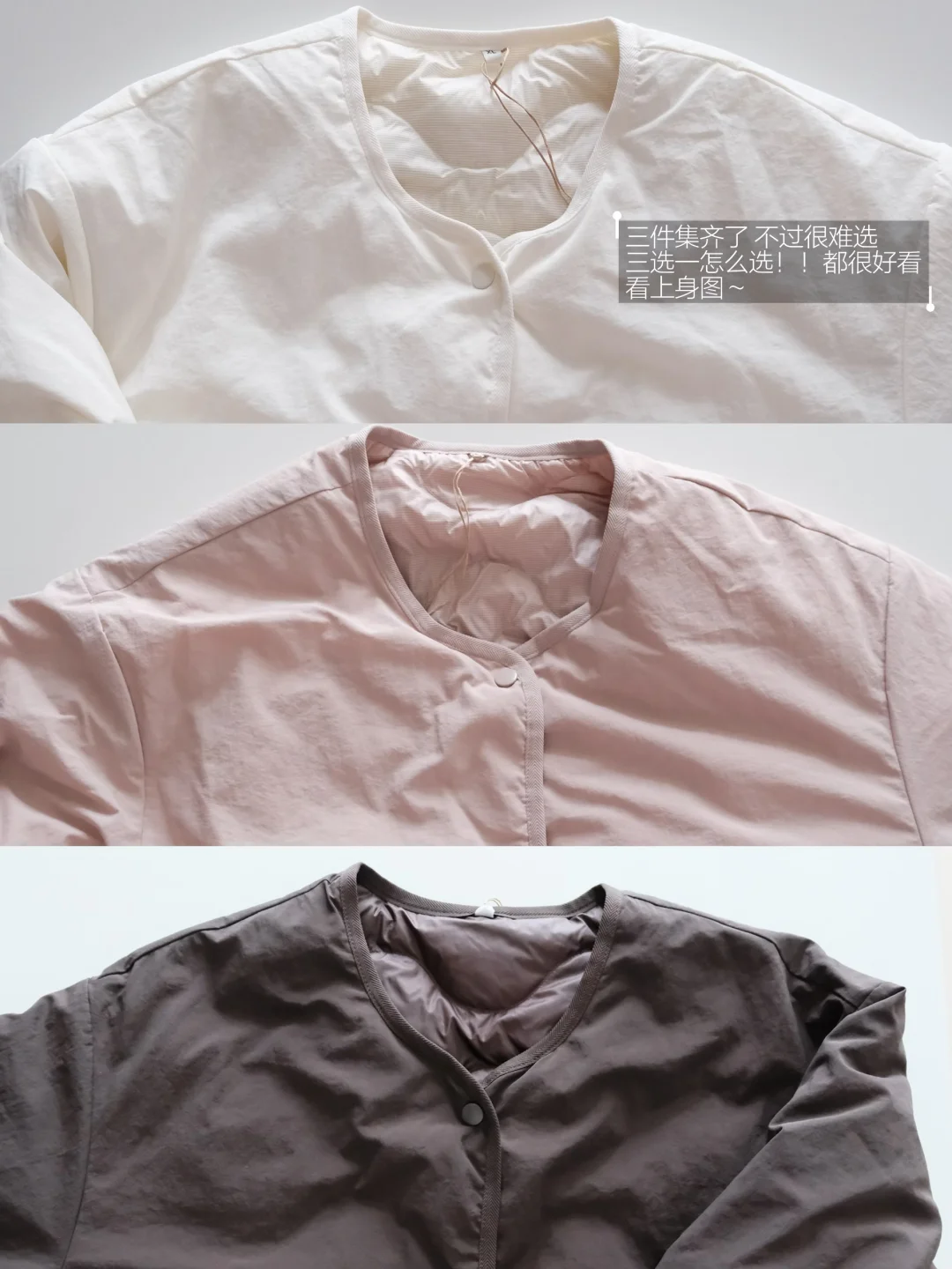 基础款合集|Muji无领羽绒服粉棕白色