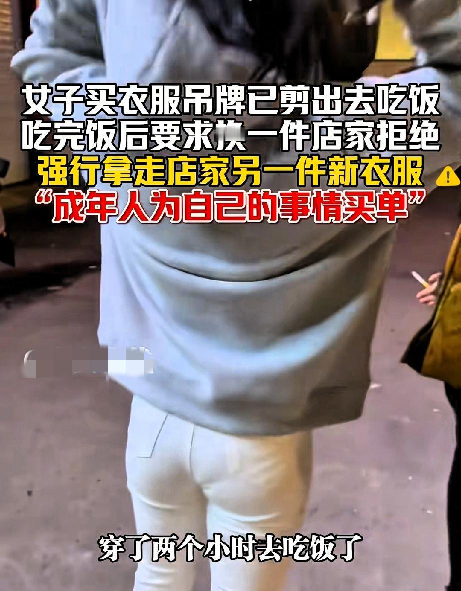 女子穿2小时火锅服强退,抢衣跑路的样子太掉价! 买衣服不剪吊牌,穿去火锅店蹭完两小时烟火气,转头就找店家退换? 这操作真把自私刻进DNA里了! 火锅味有多顽固谁不知道,衣服穿在身上沾了油烟、蹭了污渍,就算肉眼看不见,也早没了全新的状态,店家拿回去怎么二次售卖? 说白了这不是退换货,这是变相“租衣服”还不想花钱! 店主拒绝完全合情合理,没想到女子更离谱,直接拿起店里的外衣穿上就溜,被追着还知道用帽子遮脸,早知道丢人当初干嘛去了? 消费的底线是互相尊重,店家开门做生意不是做慈善,你图一时方便,却让别人承担损失,这种占便宜没够的心态真让人不齿。 做人厚道点,别把小聪明用在歪地方,掉价又丢人! 你遇到过这种奇葩退换货要求吗? 如果是你开店,会同意这种诉求吗? 来评论区聊聊你的看法~