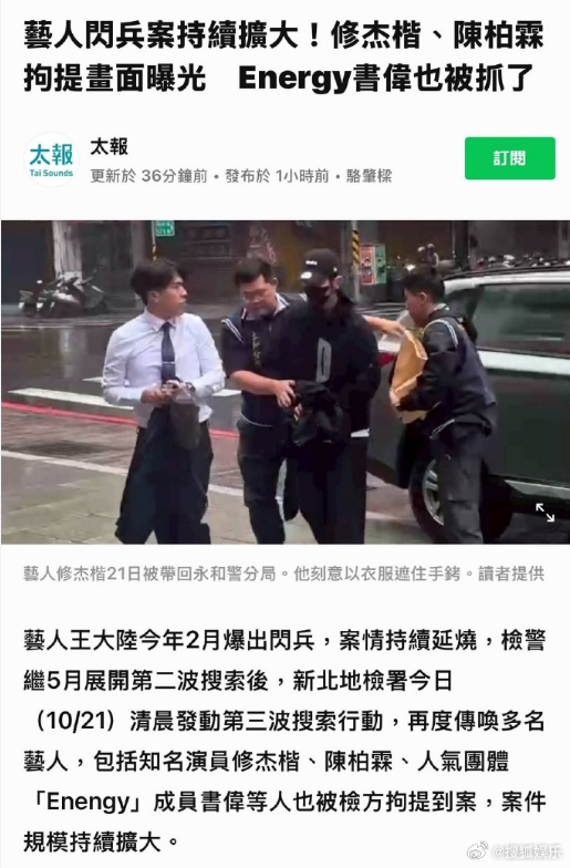 中国台湾检警针对“闪兵案”展开第三波行动,修杰楷、陈柏霖、坤达等人因...