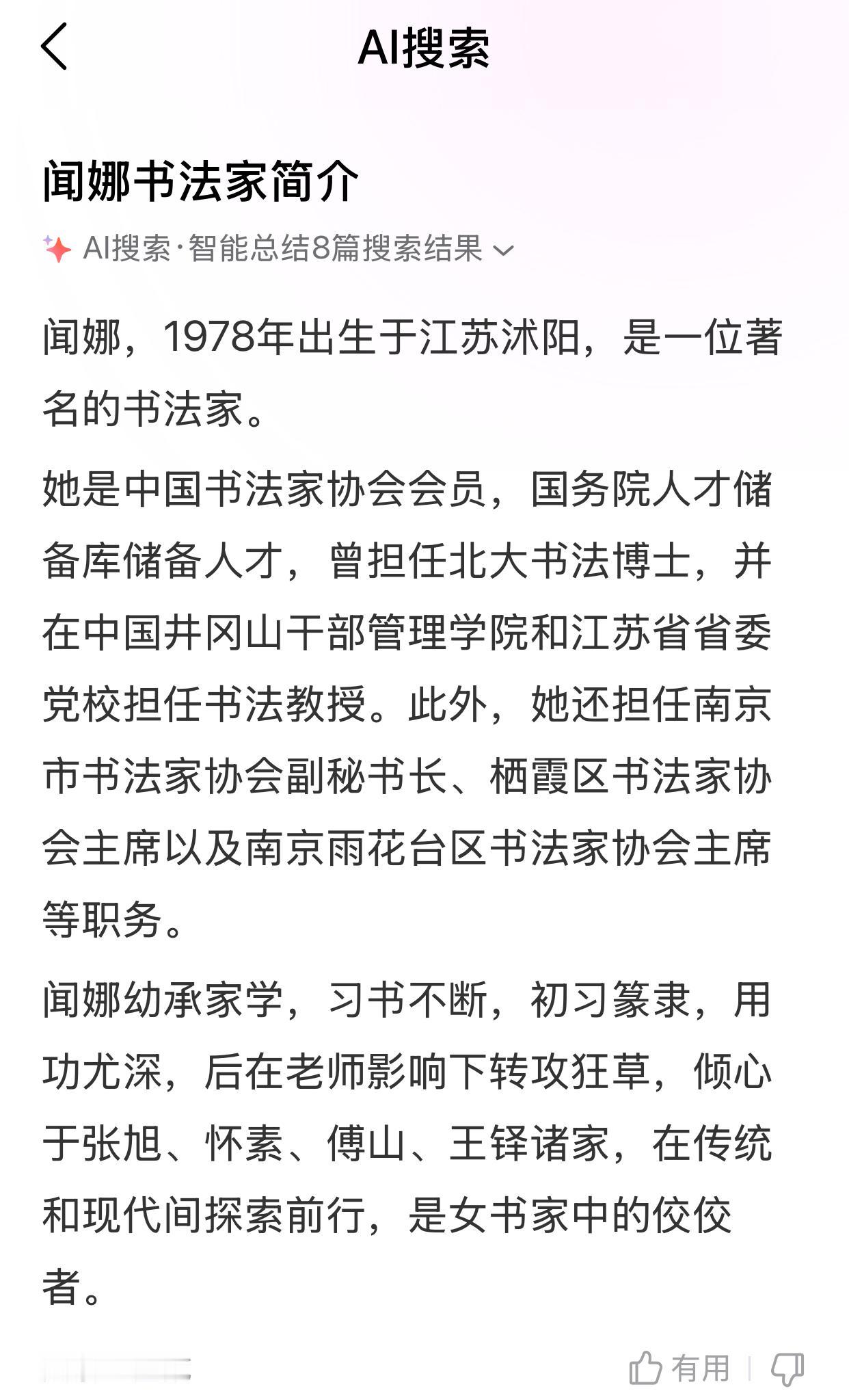 北大书法博士闻娜的书法作品。恕我孤陋寡闻,没听说过北大还有书法博士。可能是咱才疏学浅,没看出来作品的真谛。但我知道,上小学的时候,假如书法课上写大字写成这样,老师一定会给你不及格的。 您觉得这幅书法作品怎么样?是不是特有水平?属于什么流派?