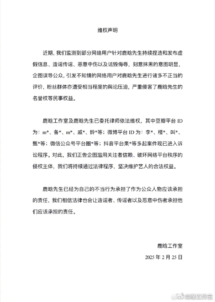 【鹿晗黑粉被送达判决书】鹿晗维权案最新进展企查查APP显示,近日,鹿晗与陈某某网络侵权责任纠纷一案已审理终结,法院向陈某某公告送达民事判决书,逾期未上诉的,判决即发生法律效力。此前,鹿晗工作室曾发布维权声明,表示将持续通过法律程序,坚决维护艺人的合法权益。
