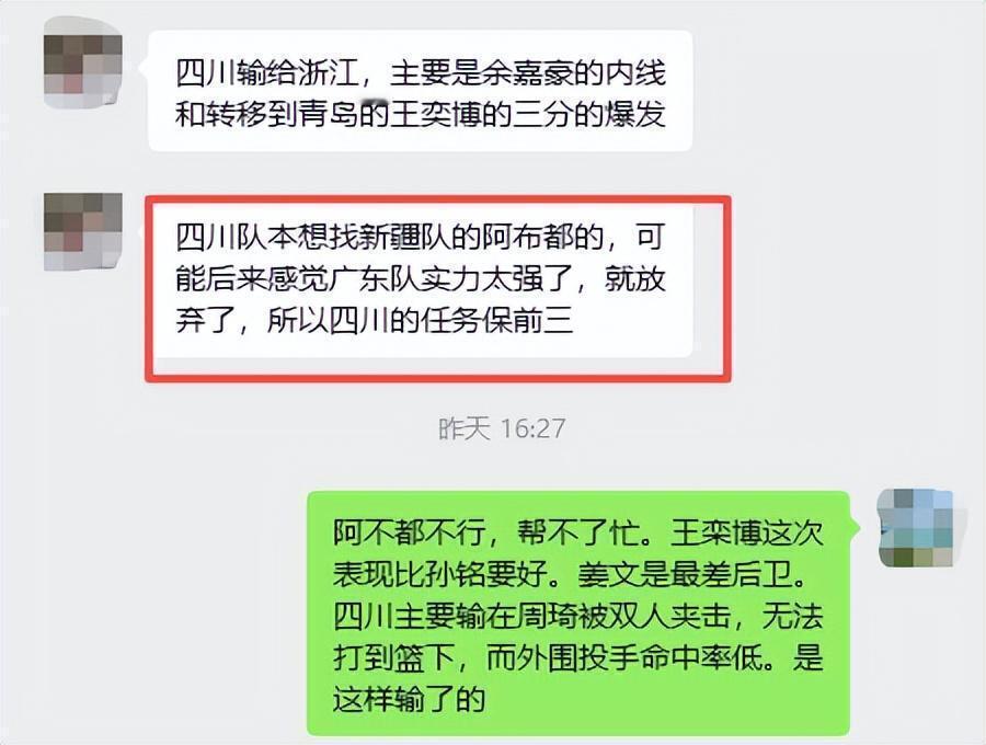 关于四川邀请阿不都沙拉木,绝对是网络谣言,根本就经不起推敲 周琦代表四川打全运会,其实两三年前就是旧闻,看看姜文、许可和赵岩昊,其实四川砸钱组队,也应该是那时候的事情,说给周琦600万,其余人肯定少些,这不是不能猜测,只是现在涉及阿不都沙拉木,说人家担心广东队太强,最终放弃,也就是只能忽悠一般情绪化球迷而已。 沙拉木、广汇和新疆体育局关系很密切,新疆队之所以不能小组出线,沙拉木不打也不是主要原因,看看他们的阵容就知道,很多这两年被淘汰的球员大量在,球队战斗力跟四川一样被拉胯掉,沙拉木应该着重休息,新疆队打进决赛的话,很可能就到广东打比赛了,只是没想到被淘汰。 再就是组委会,根本没有给大家更换球员的机会,当然大名单外的球员不能。