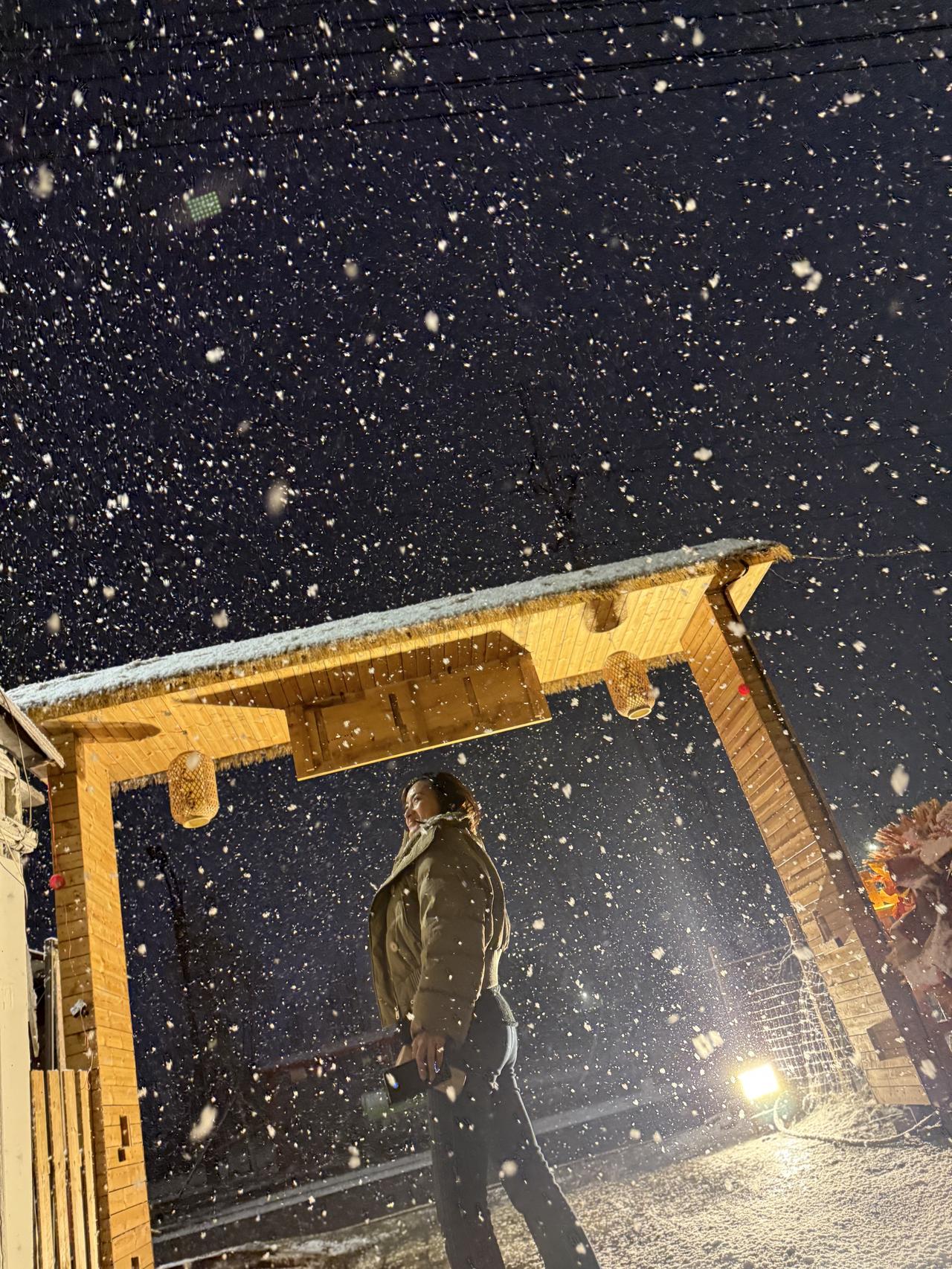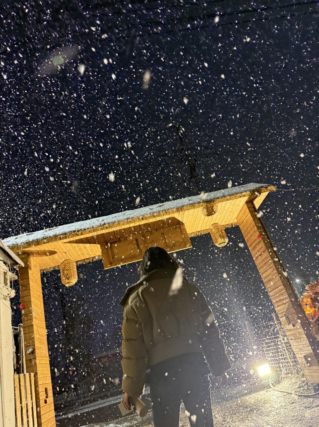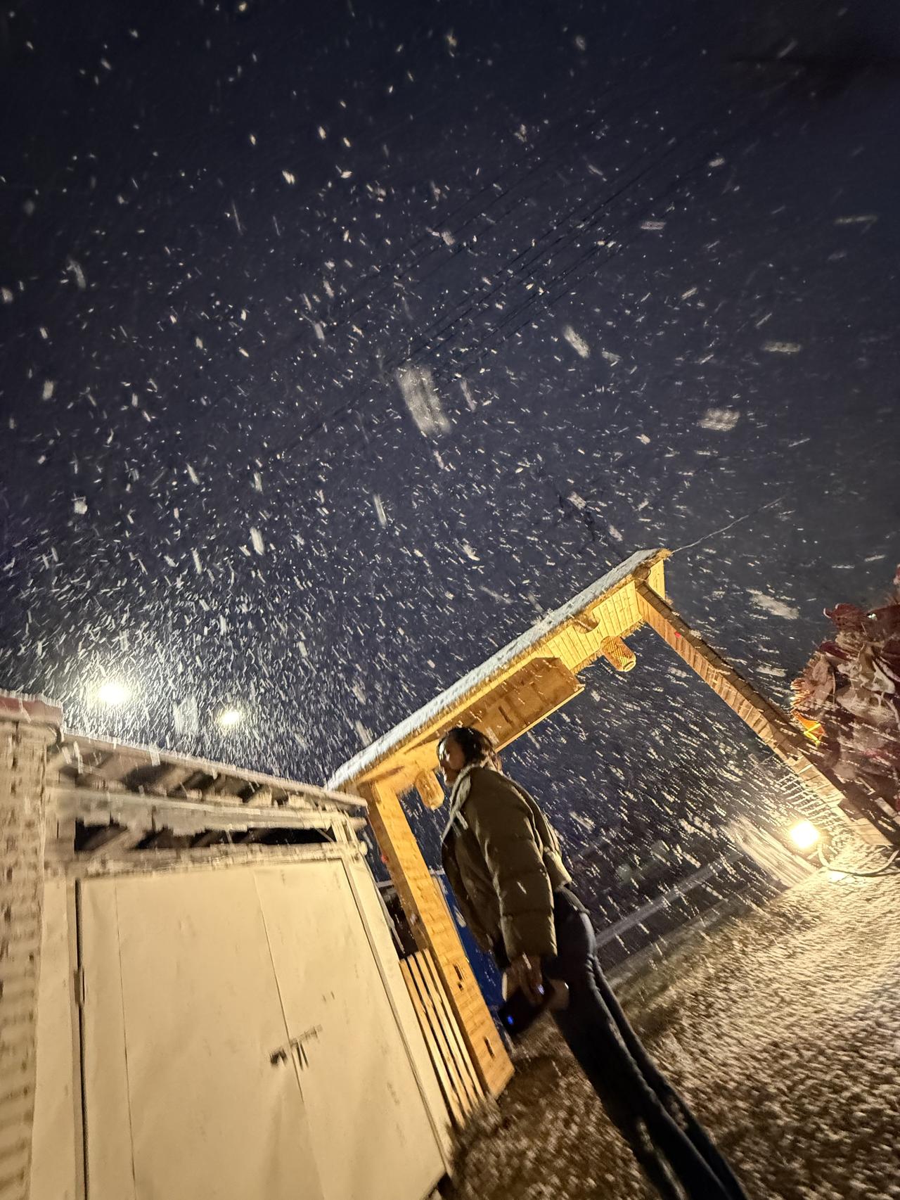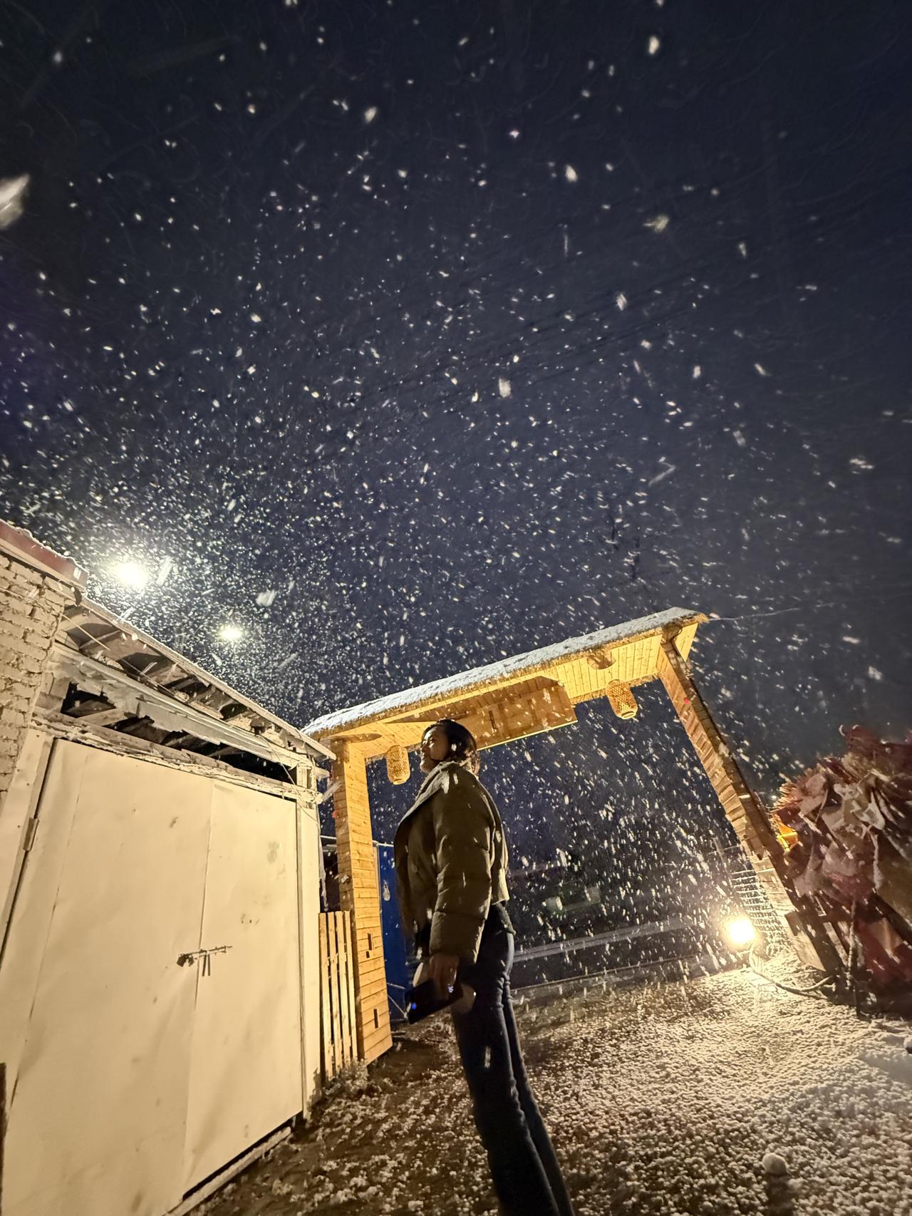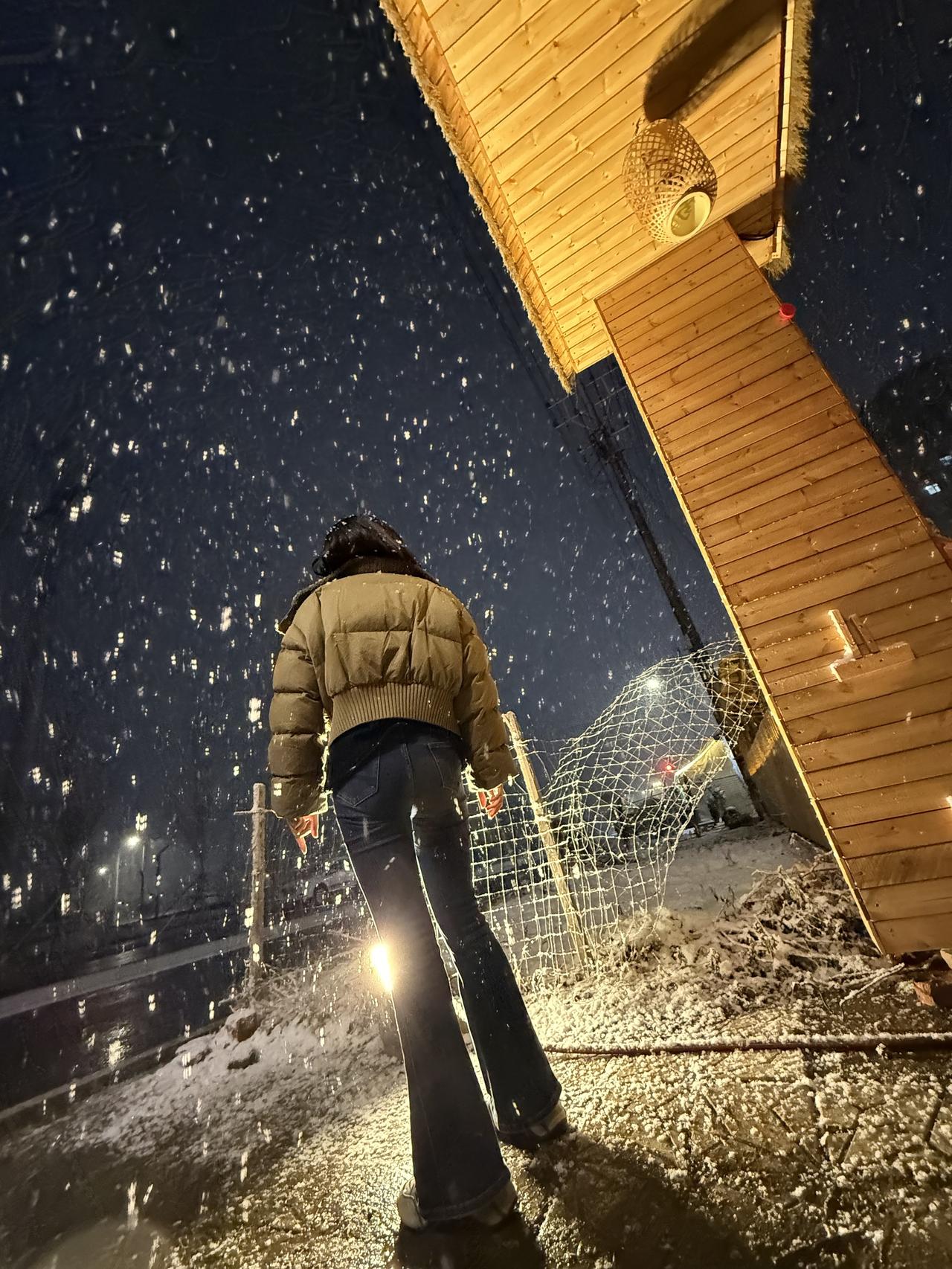 雪夜漫步,暖意融融,冬日里的温暖瞬间。
