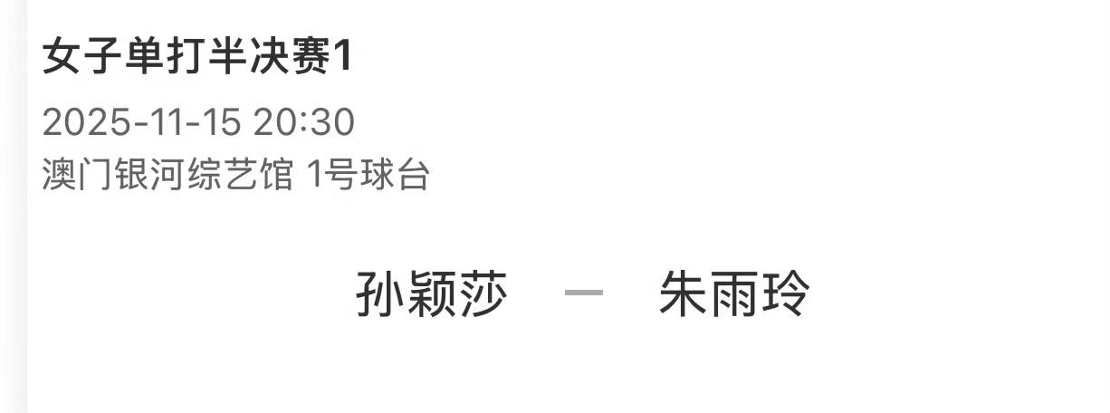 明天晚上20点30分莎莎vs朱雨玲,一号桌莎粉们记得蹲!!!比赛...
