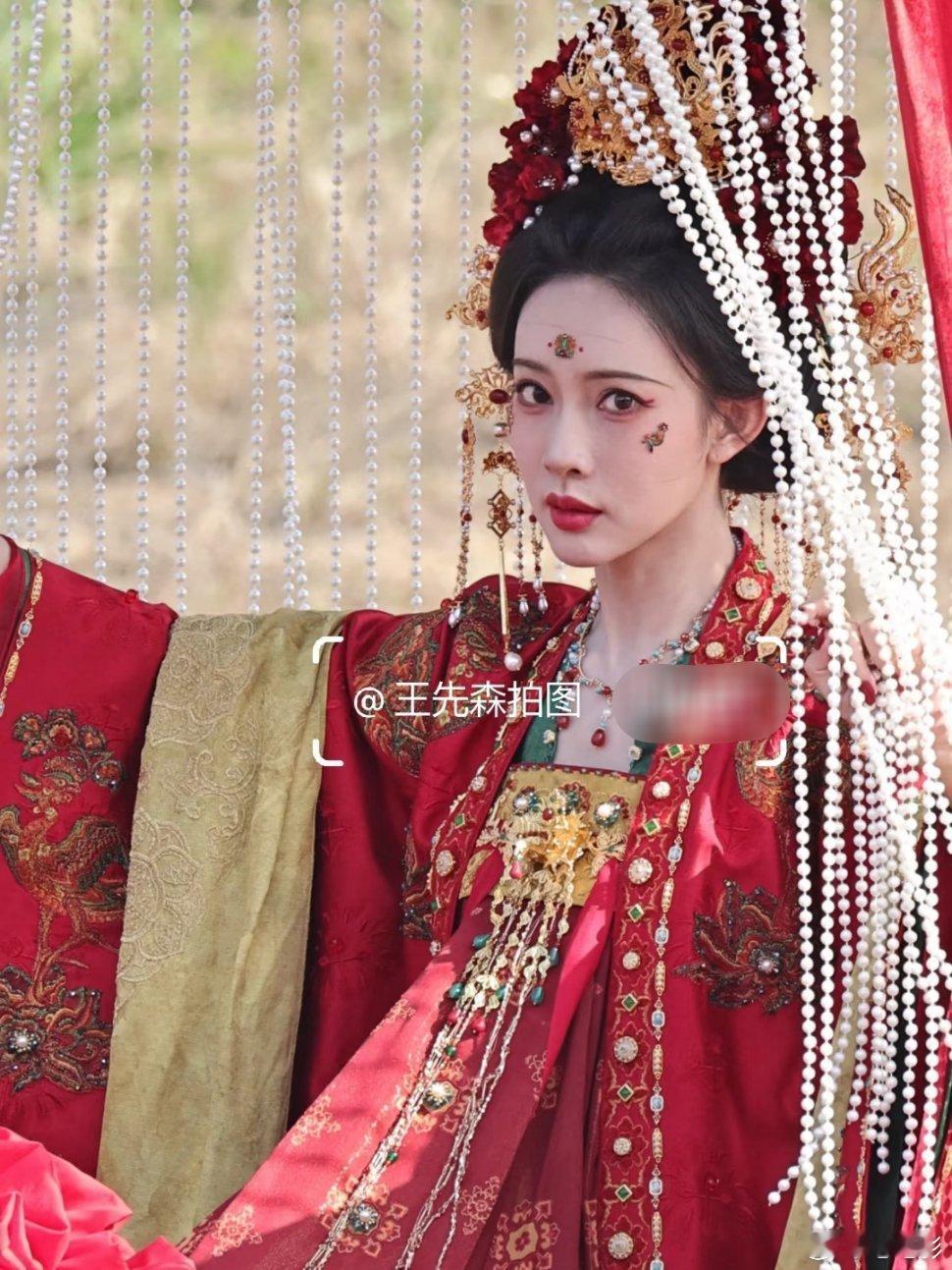 刷到孟子义婚服路透直接尖叫!这华丽程度谁看了不迷糊,小脸蛋 hold 住这么重工造型也太牛了!