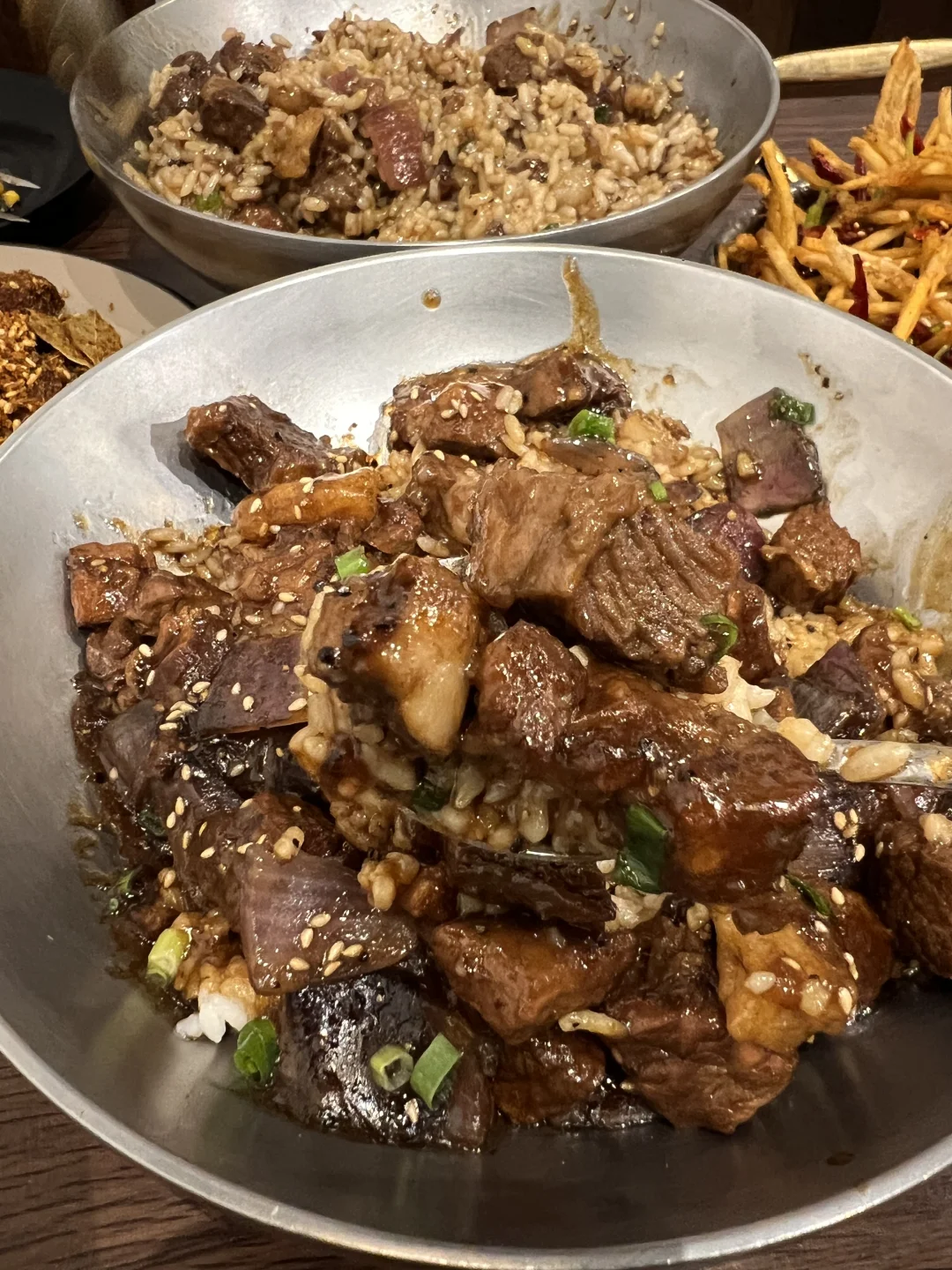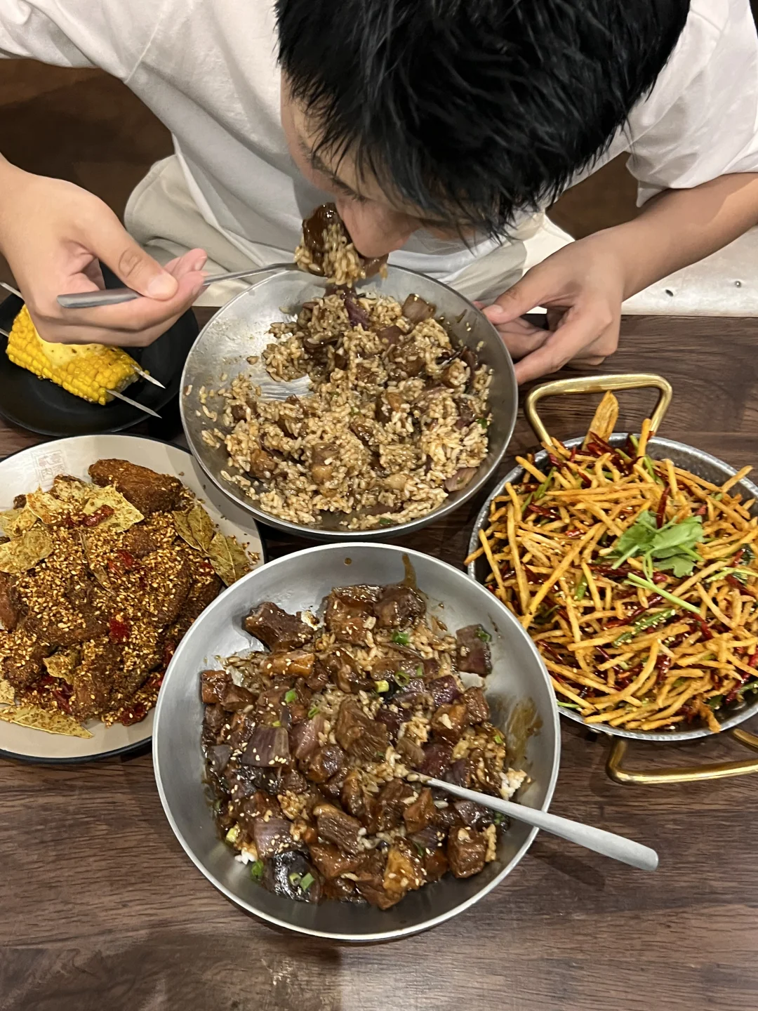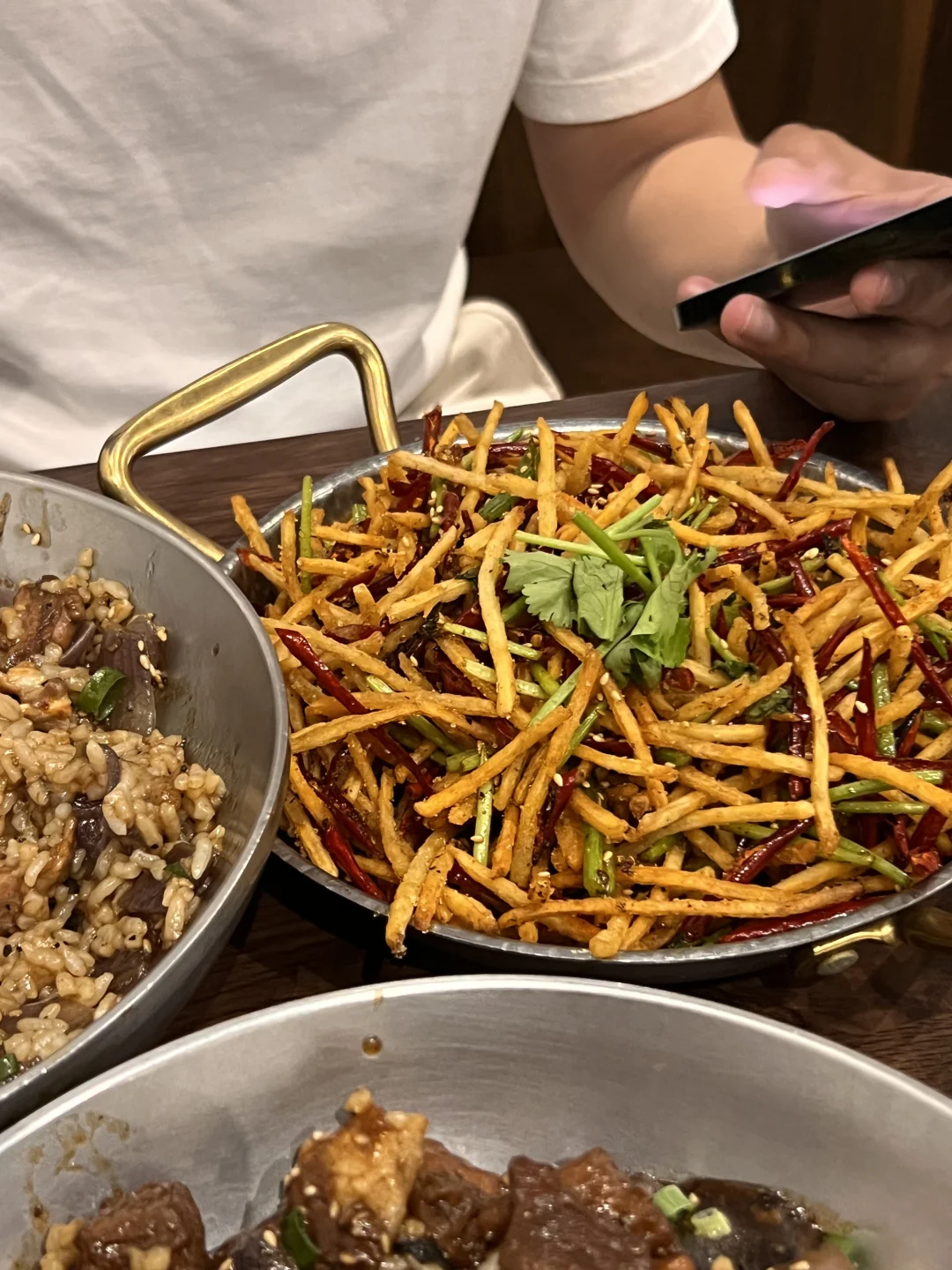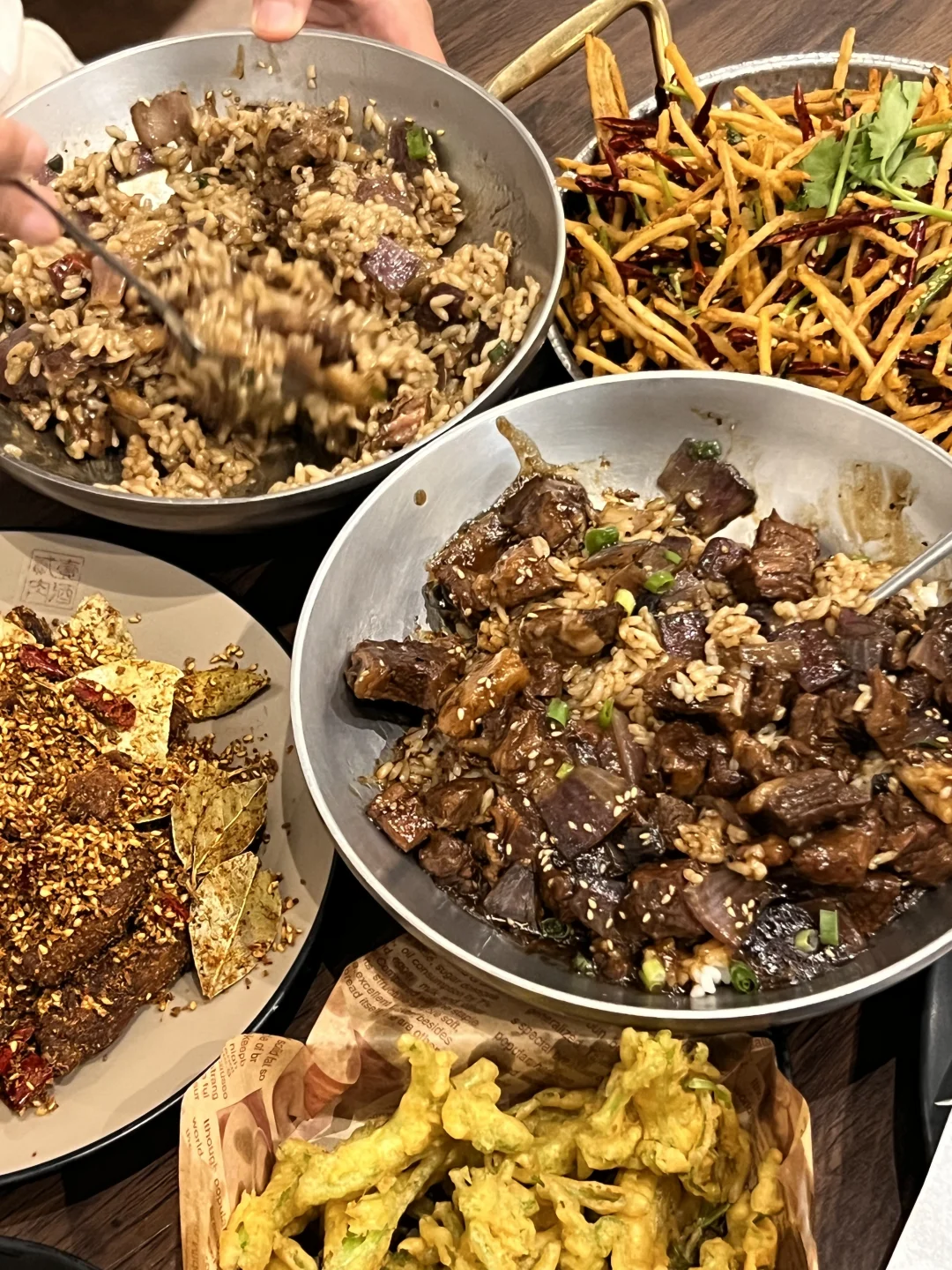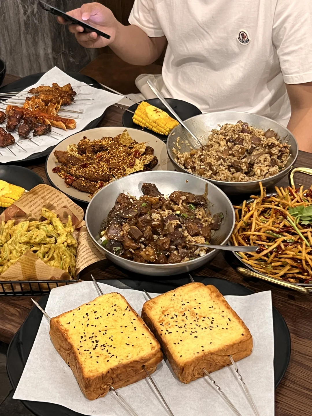 和男盆友的宝藏深夜小食堂🥣 开了八年!!位置有点隐蔽!路过可能都会忽略那种🙂↔️ 刀削面麻辣烫、香叶鸡脖回回必点!这次又有🆕妻子了,金丝薯脆!!!我天!老好吃了……想打包一份带走回家煲剧吃 个人真的很爱牛肉饭里的黑椒牛肉!!! 太香太好炫了[哭惹R]氛围真好啊~ 很适合和朋友闺蜜👭来这里二人食!