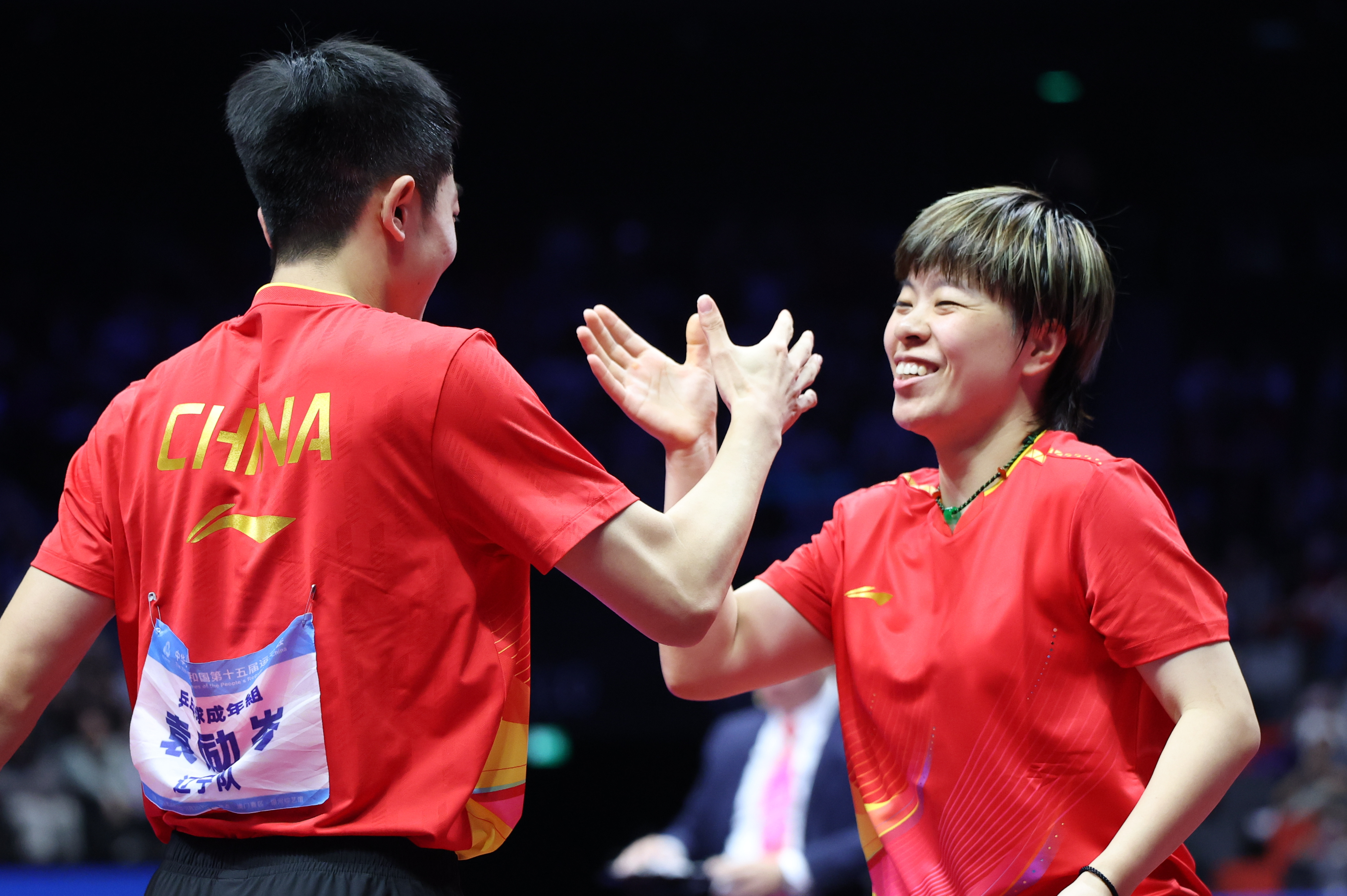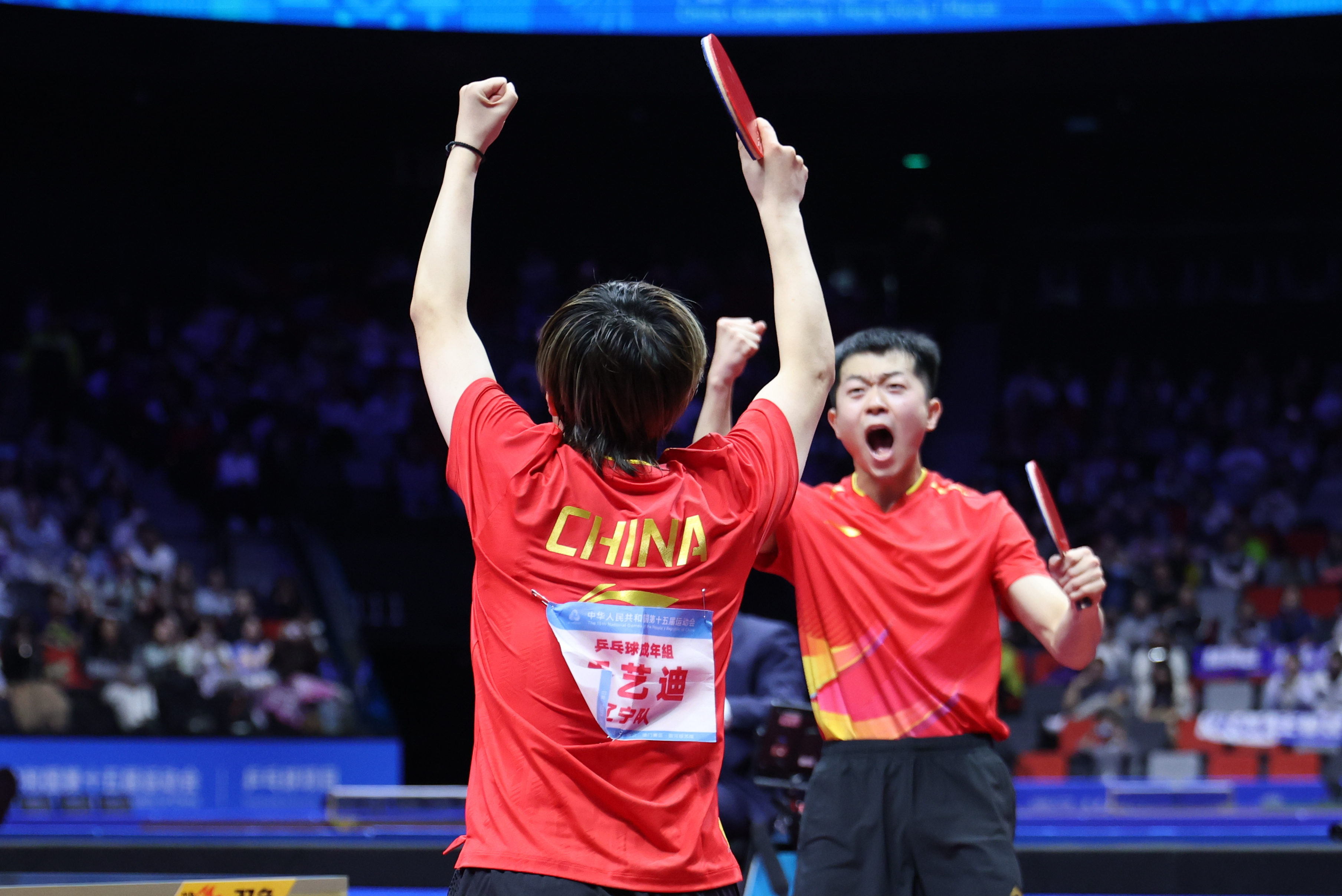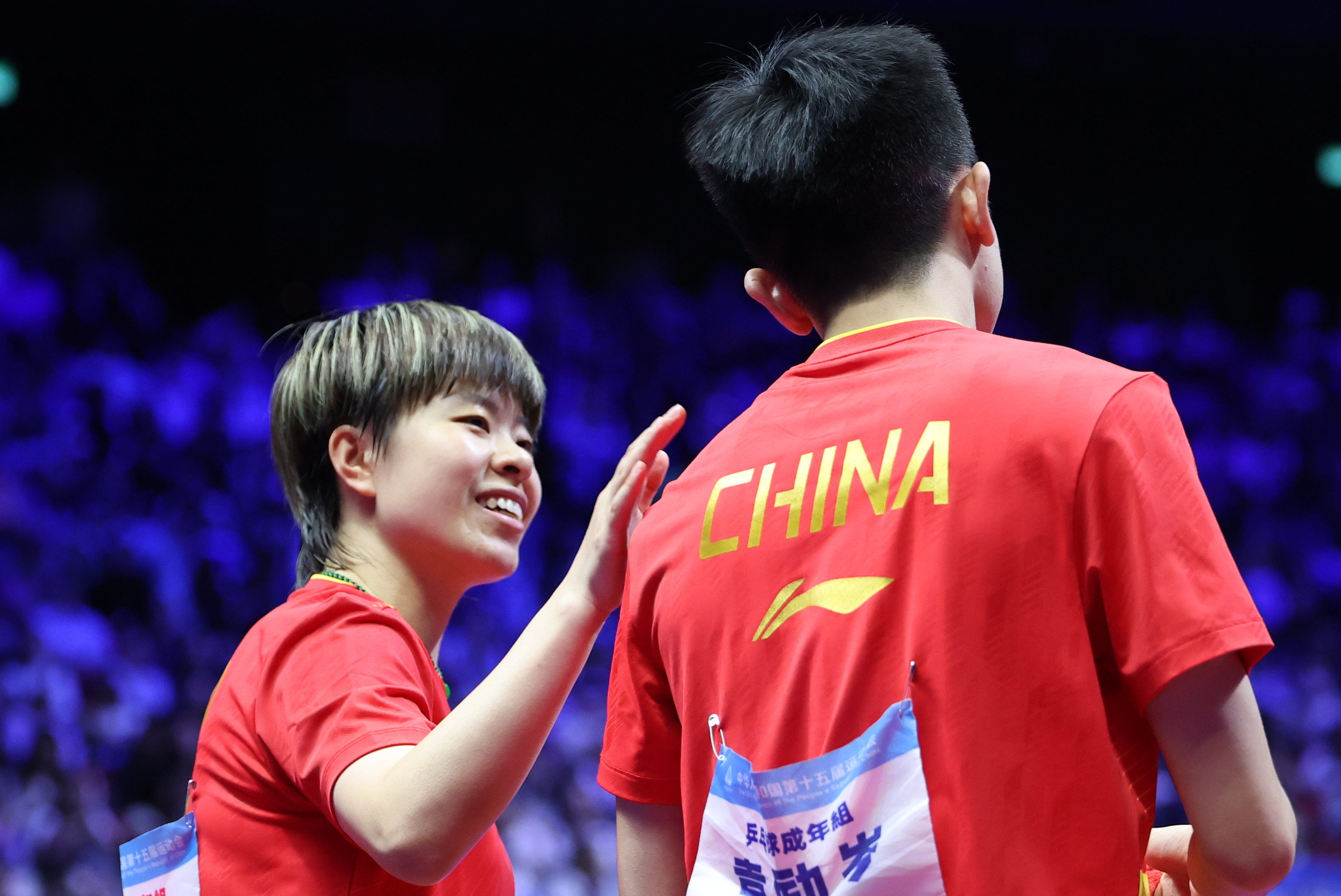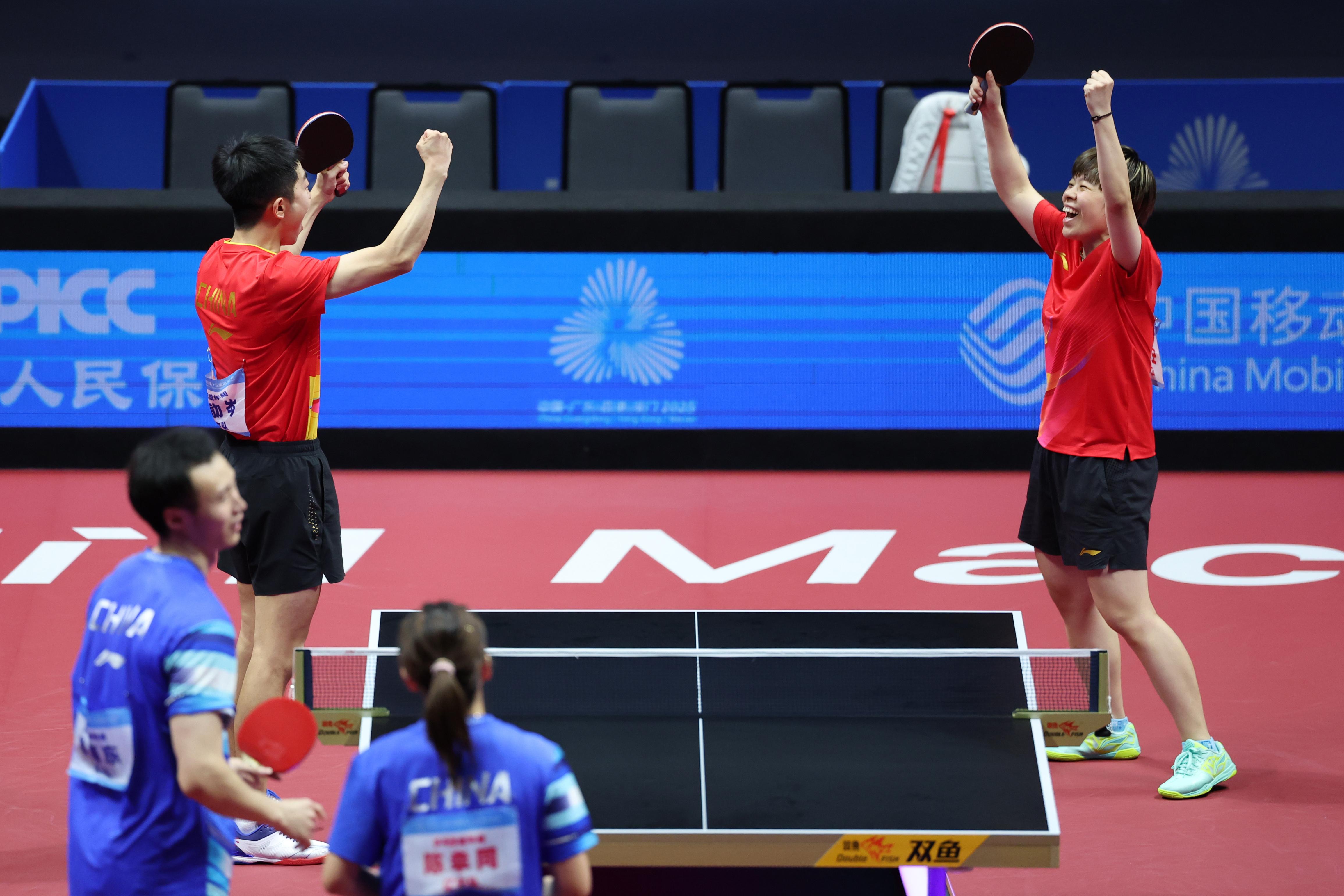 乒乓球项目混双金牌战林高远刘诗雯(广东)4比2陈垣宇蒯曼(江苏)第一局:13:1