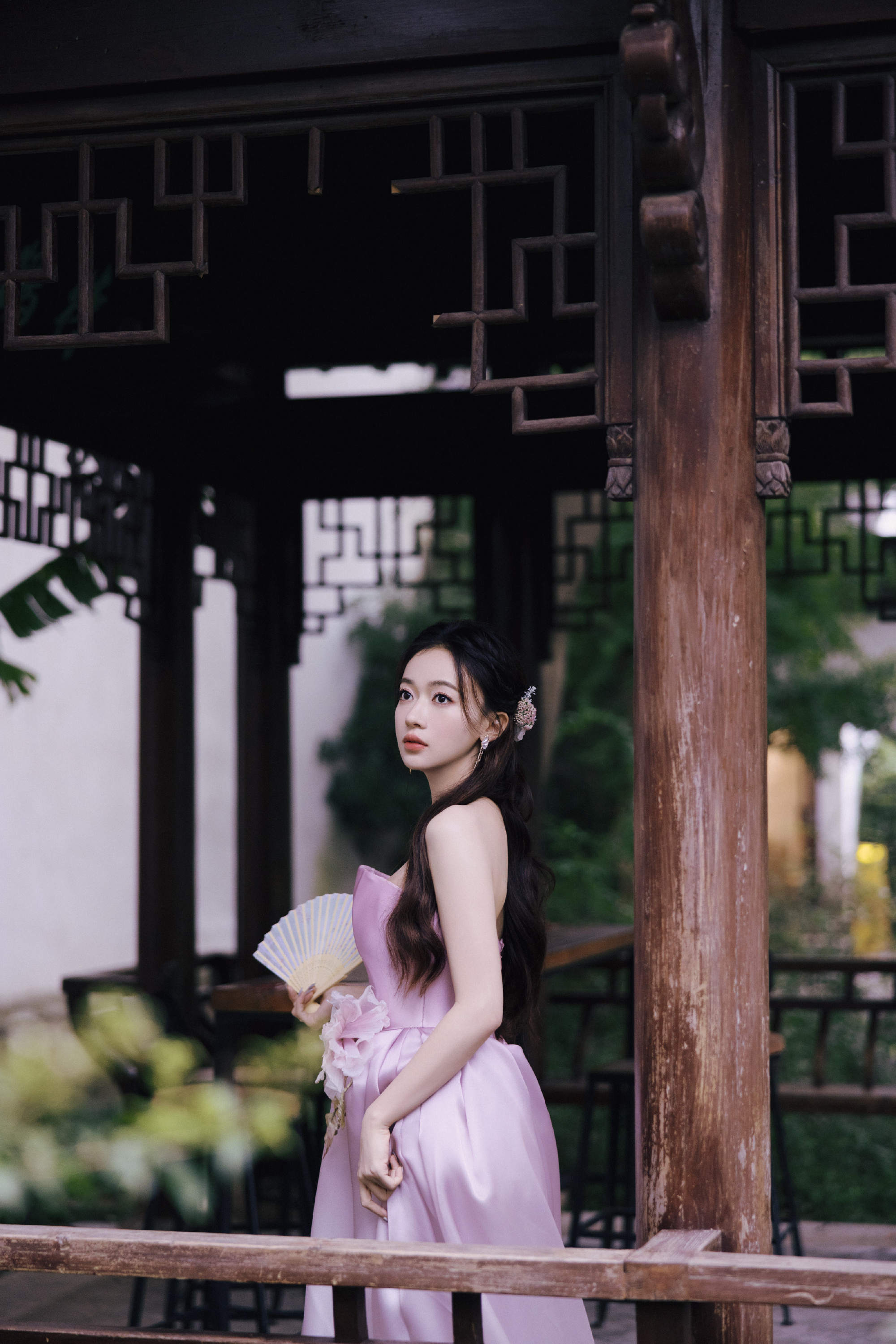 吴谨言淡粉分佳人:浮光流韵,感受花的沁香