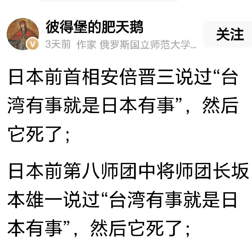 有点意思!日本网民炸锅了,他们竟然这么总结的: 日本有事,就是日本有事! 安倍有事,就是安倍有事! 坂本熊一有事,就是坂本熊一有事! 高市早苗有事,就是高市早苗有事! 有道理!又快了!你还别不信!