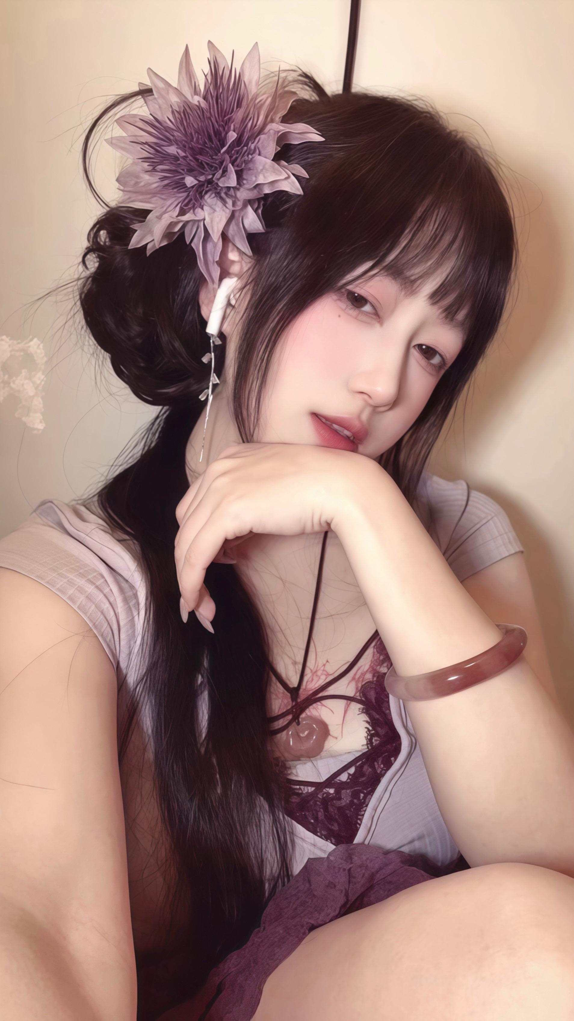 白鹿身穿黑色蕾丝抹胸裙贴合身形,勾勒出曼妙曲线。裙身上点缀着精致的立体花朵,每